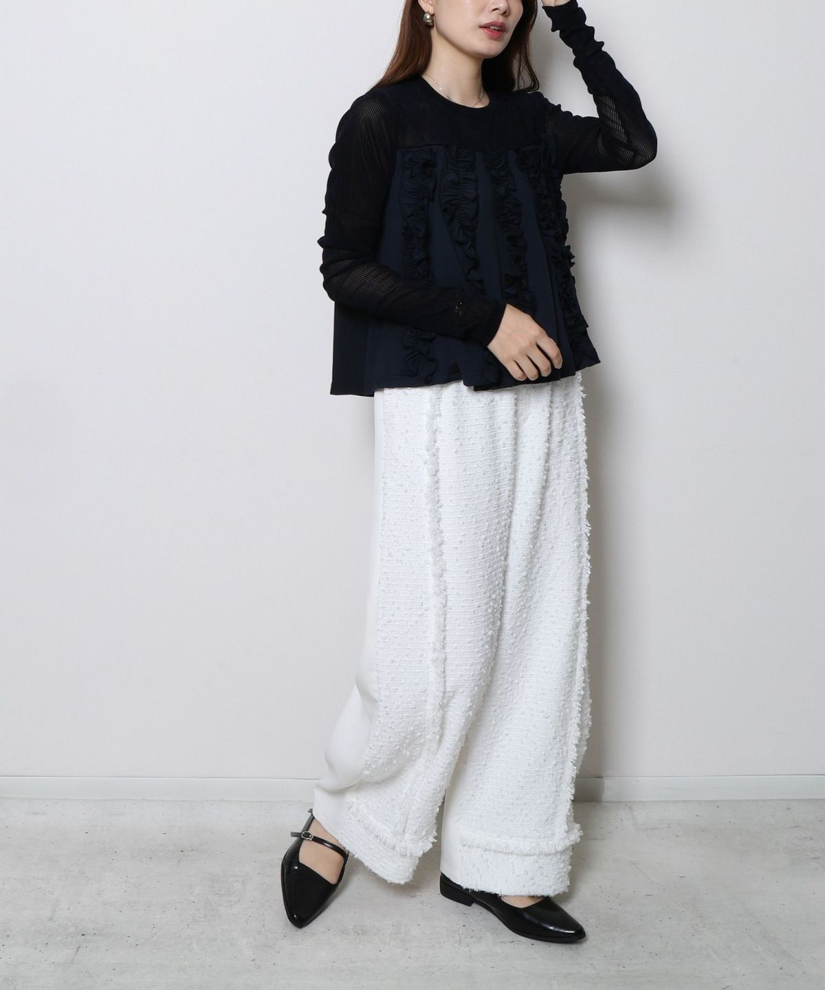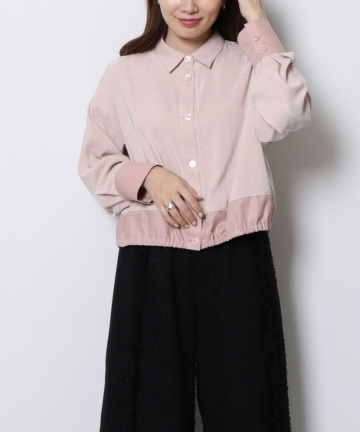 ◆衿付ツイードドッキングブラウス