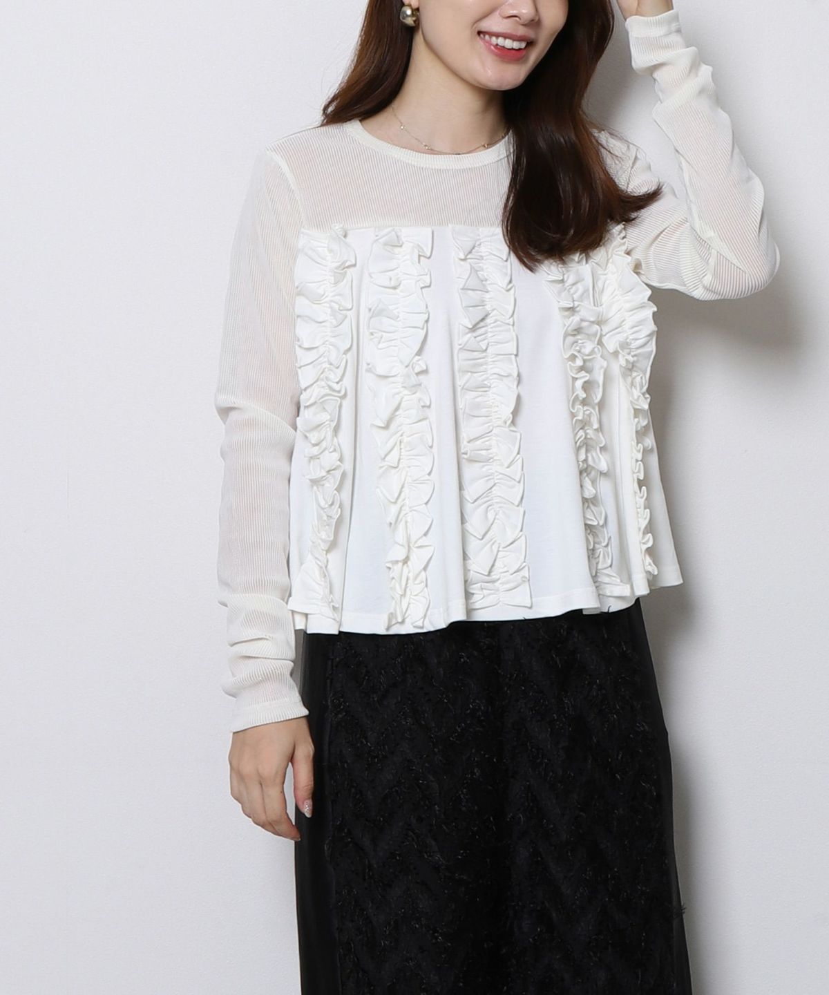 ◆フロッキーチュールギャザーフリルカットソー