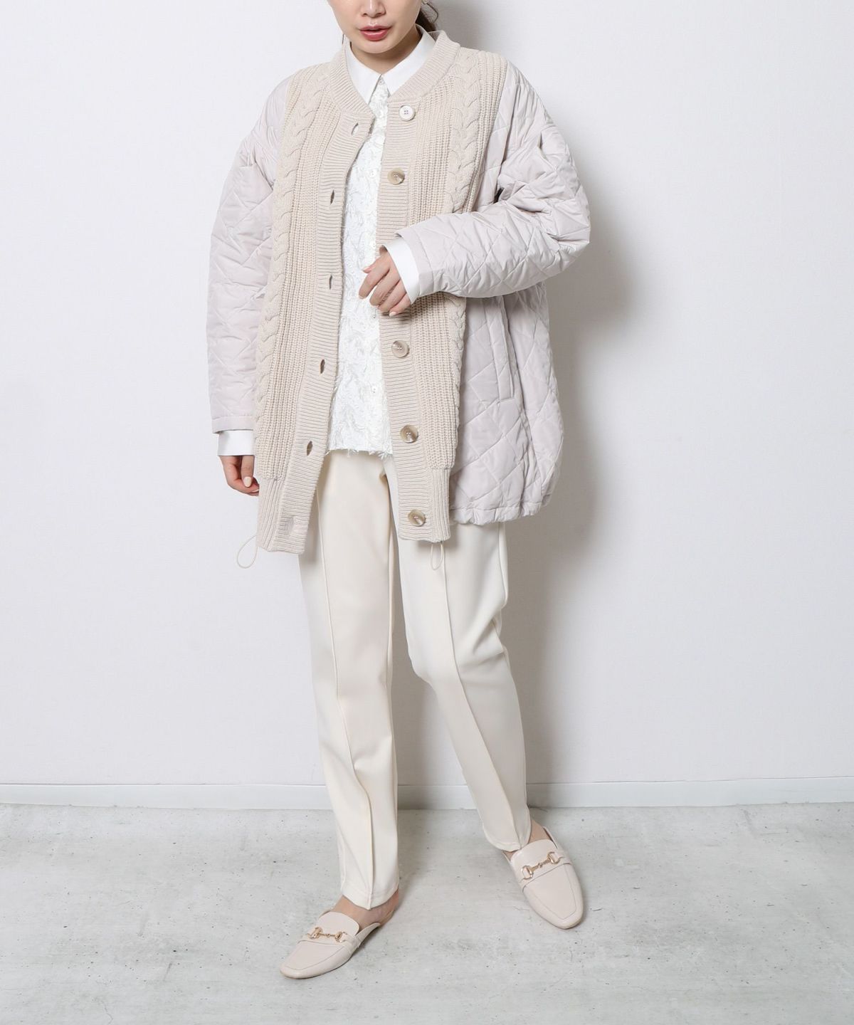 ◆キルトドッキング柄編みブルゾン