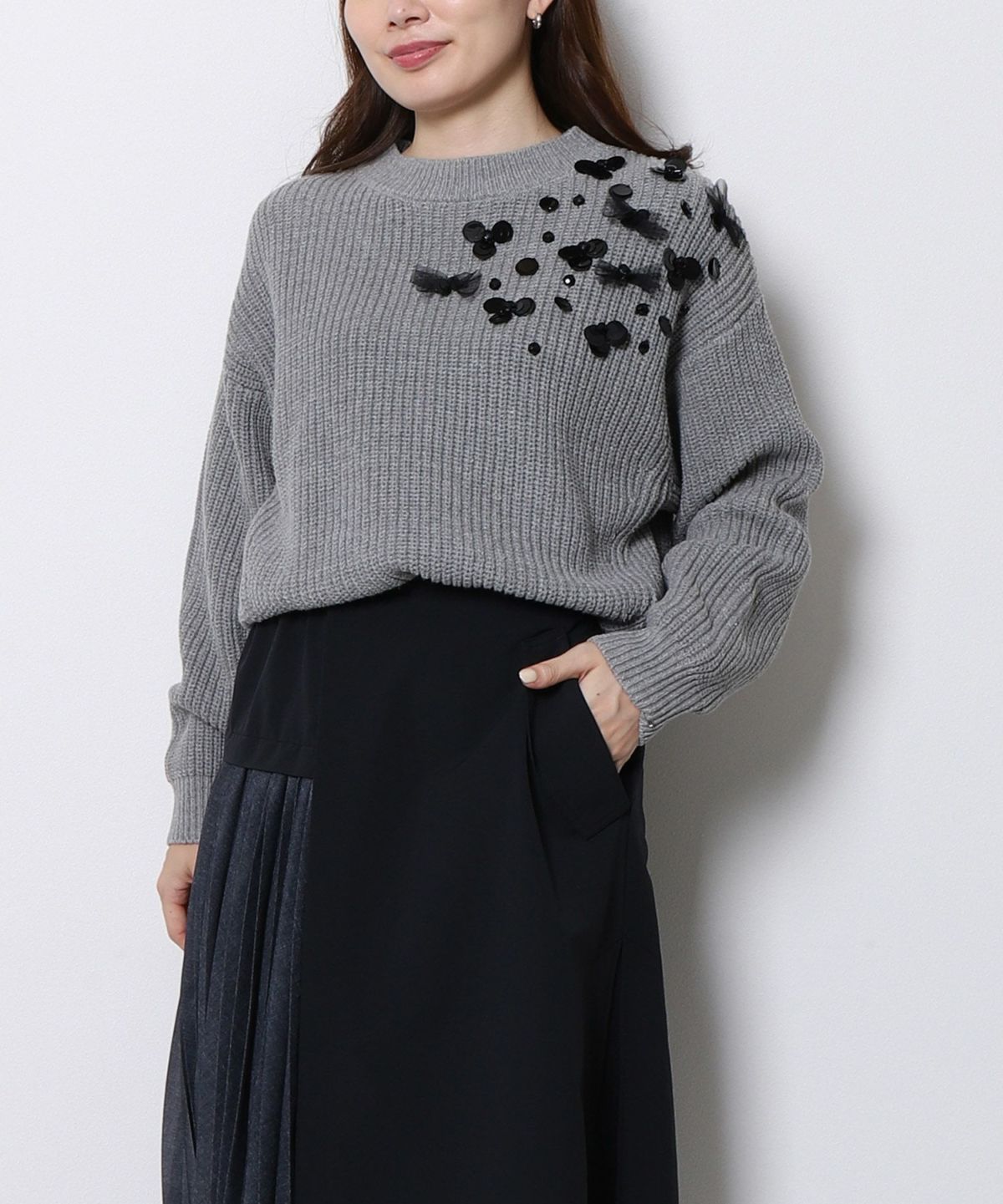◆スパンコールフラワー片畦プルオーバー
