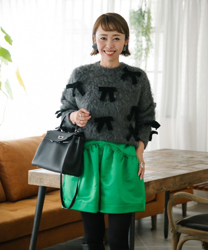 秋は素足で冬はタイツと合わせてロングブーツやボリューム感のあるシューズを合わせてトレンドなコーディネートが完成します。