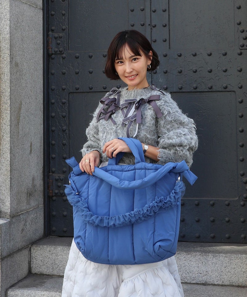 持ち手やショルダー紐までふんわりと中綿を詰め込んだトートバッグ。