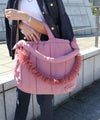 チュールストラップはギャザーをたっぷり入れて華やかな印象でアクセントに。取り外し可能なのでコーデに合わせて外したり、お手持ちのバッグにアクセサリーとしてつけるのも◎