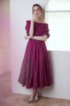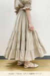 コットンティアードボリュームワンピースのスカートバージョンとして登場。定番の60Sコットンに反発感とふくらみのでる加工を施した生地を使用しており、ナチュラル感をもちながらもクリアで綺麗なルックスの薄手素材。ギャザーの分量を増やし生地をたっぷり使っている為、動くたびに裾が華やかに揺らめく美しいシルエットを演出します。同素材のコットンローンオフショルブラウスとセットアップで着用することで、ティアードワンピの進化版としてもお楽しみいただけます。