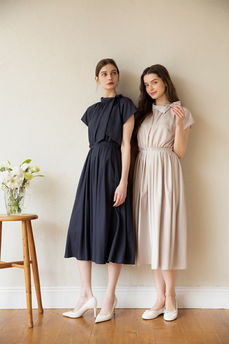 2WAYボウタイイージーケアワンピース