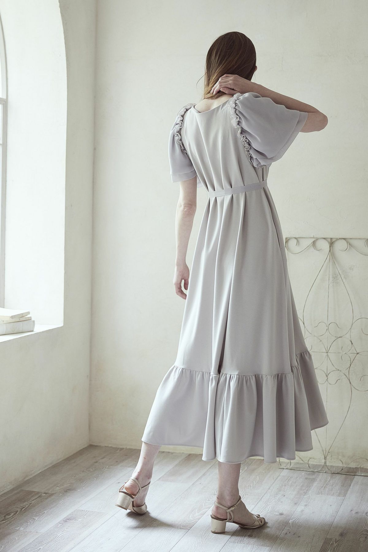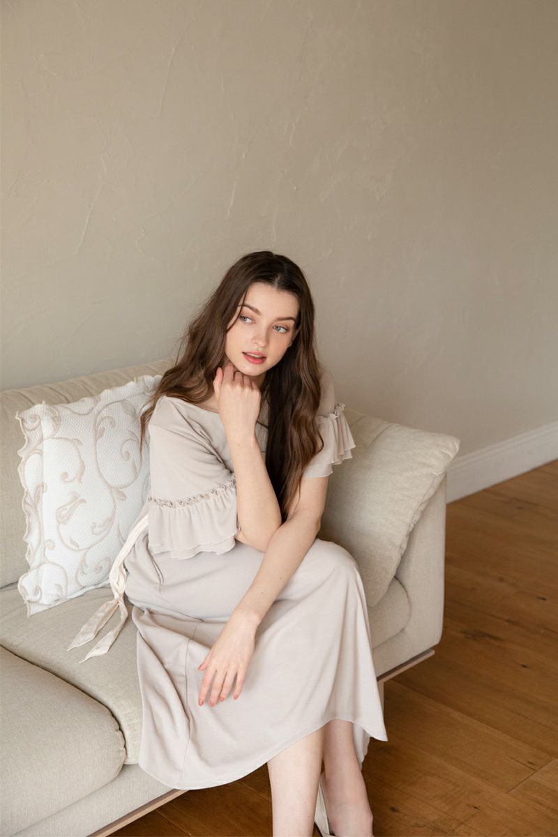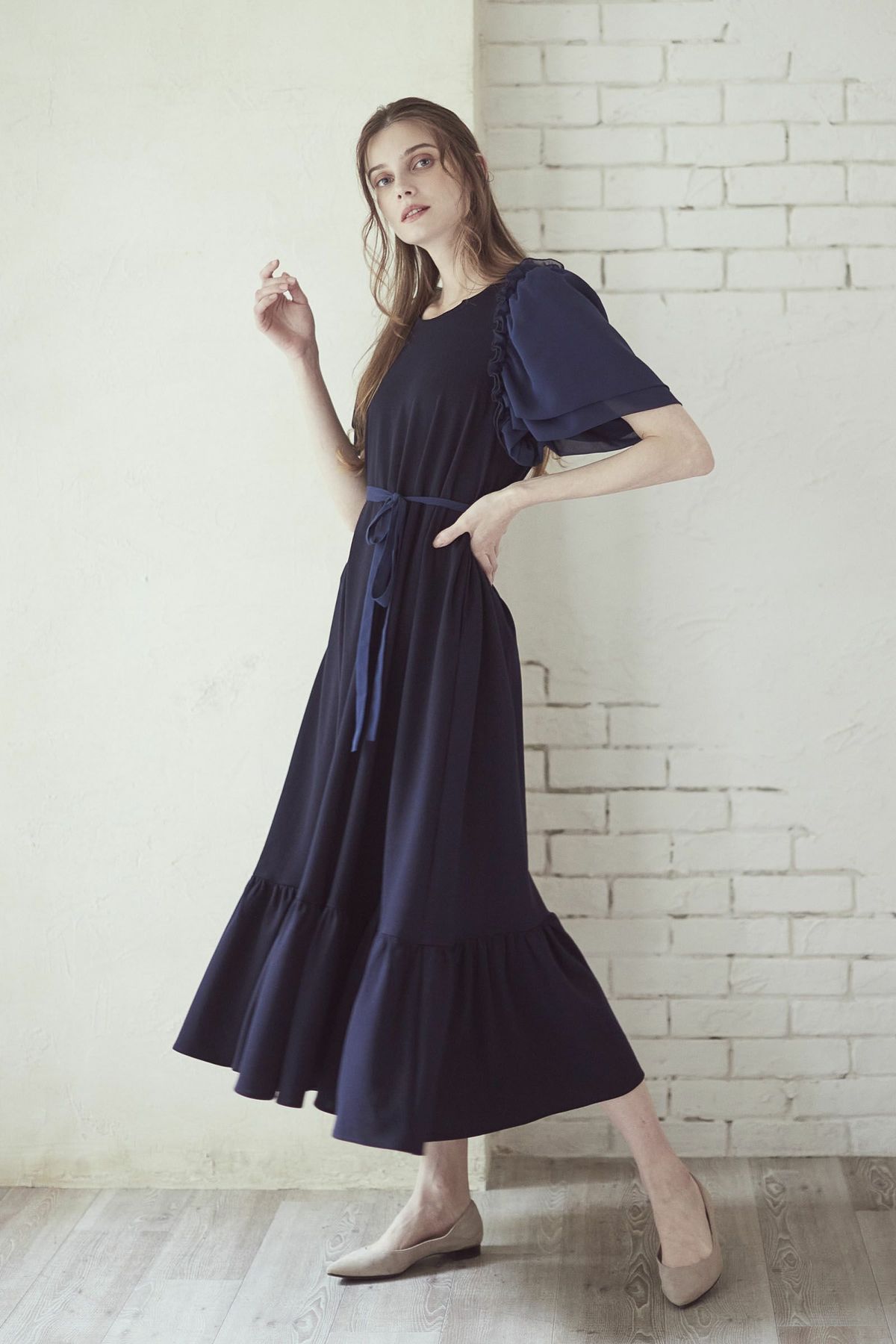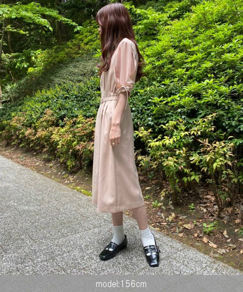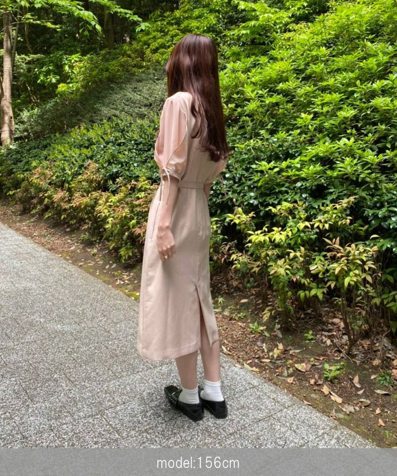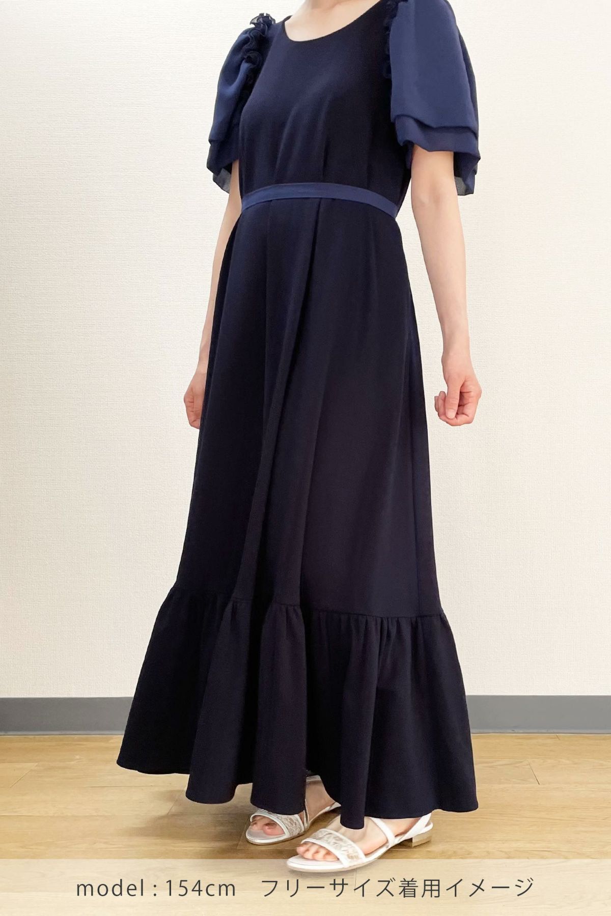 シフォンスリーブカットロングワンピース