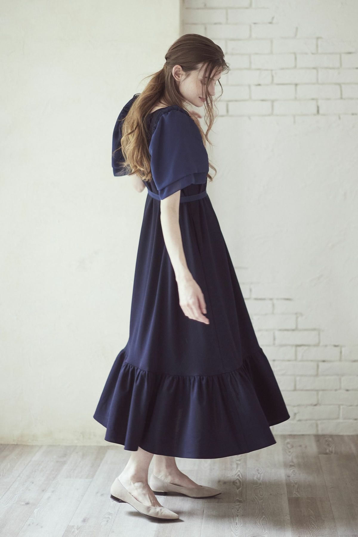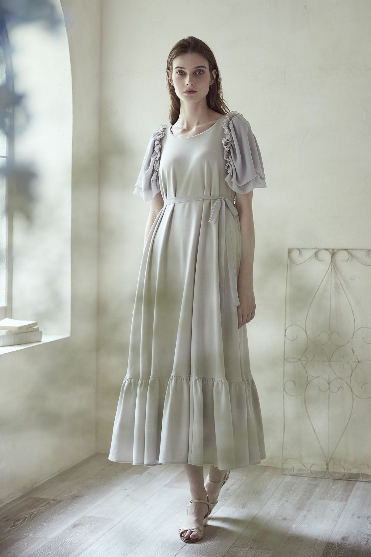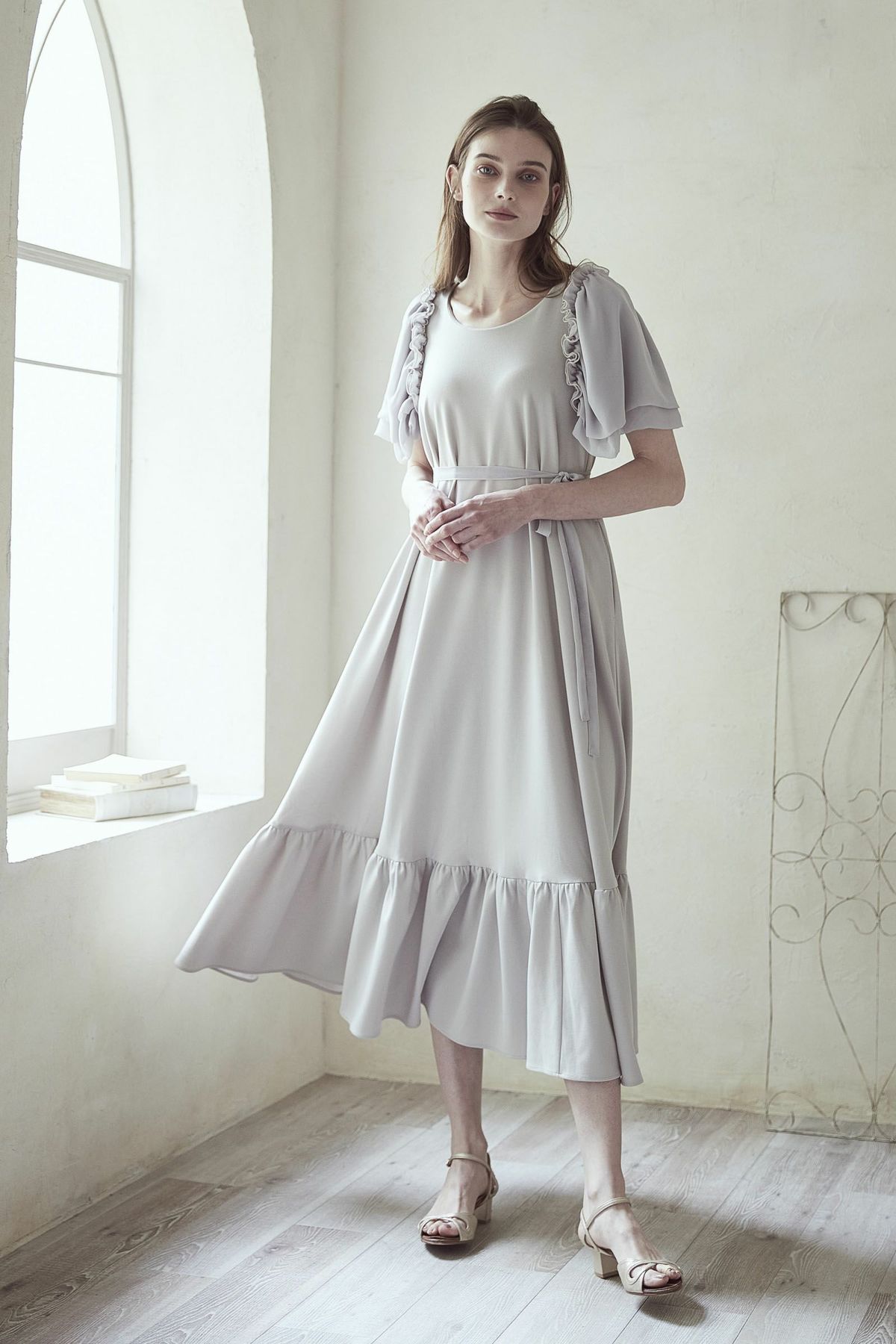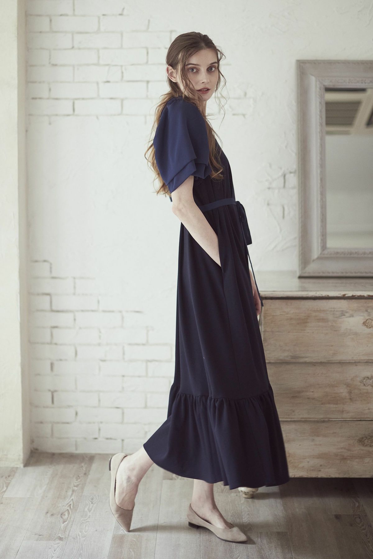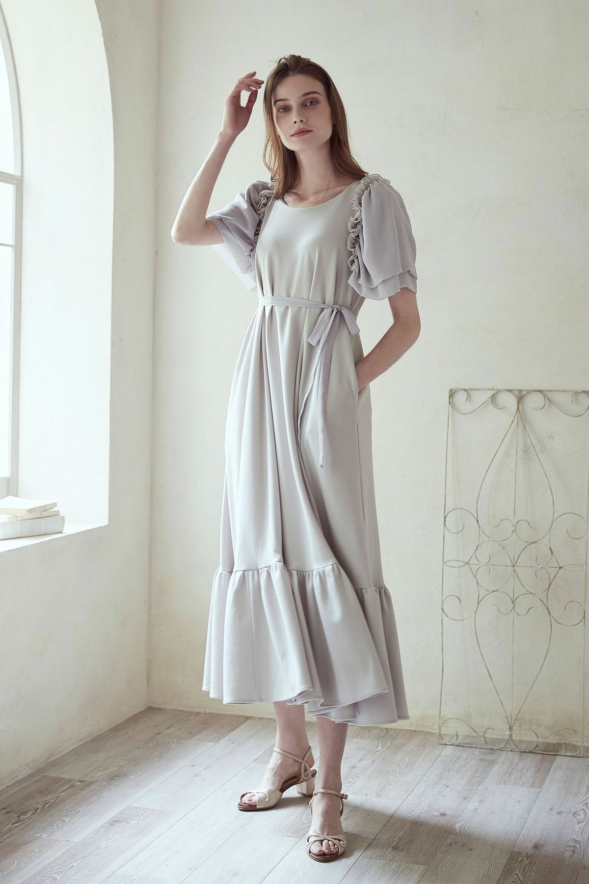 シフォンスリーブカットロングワンピース