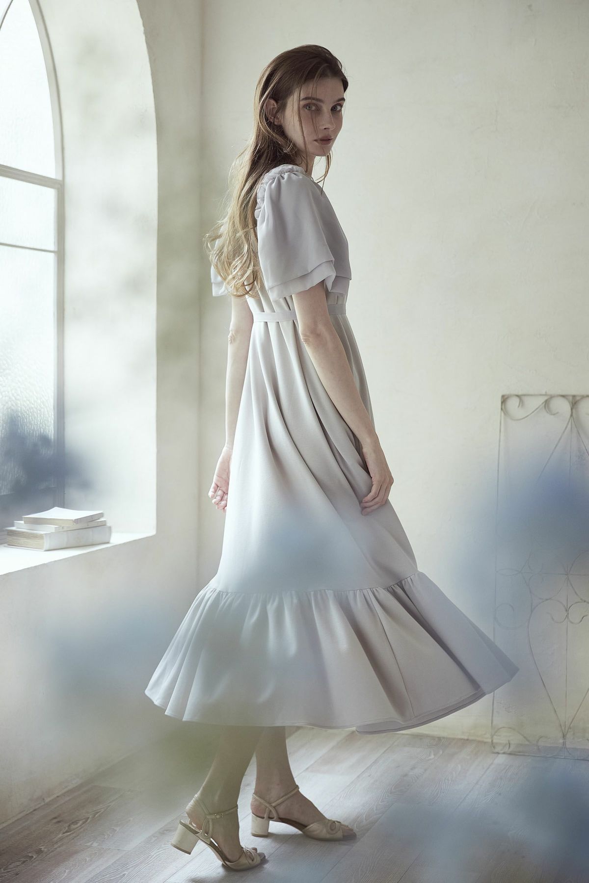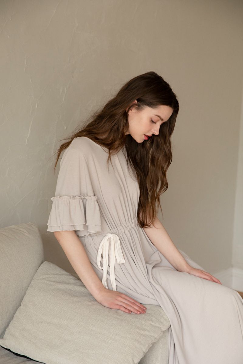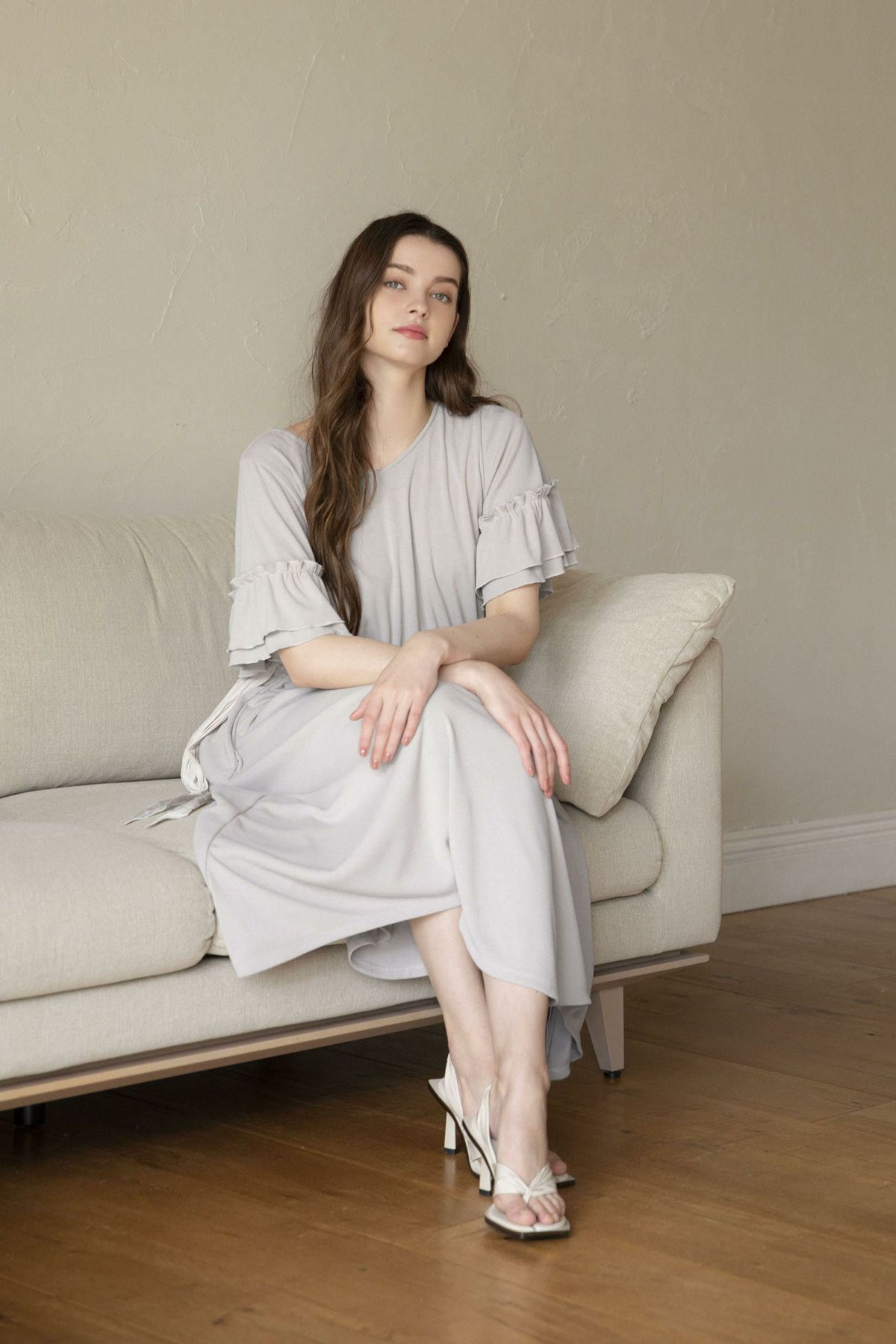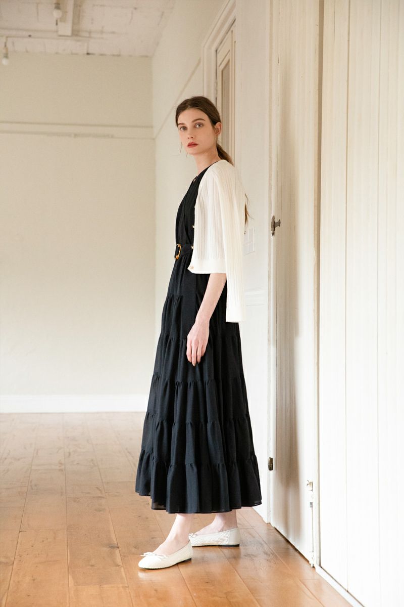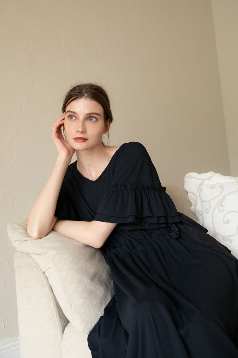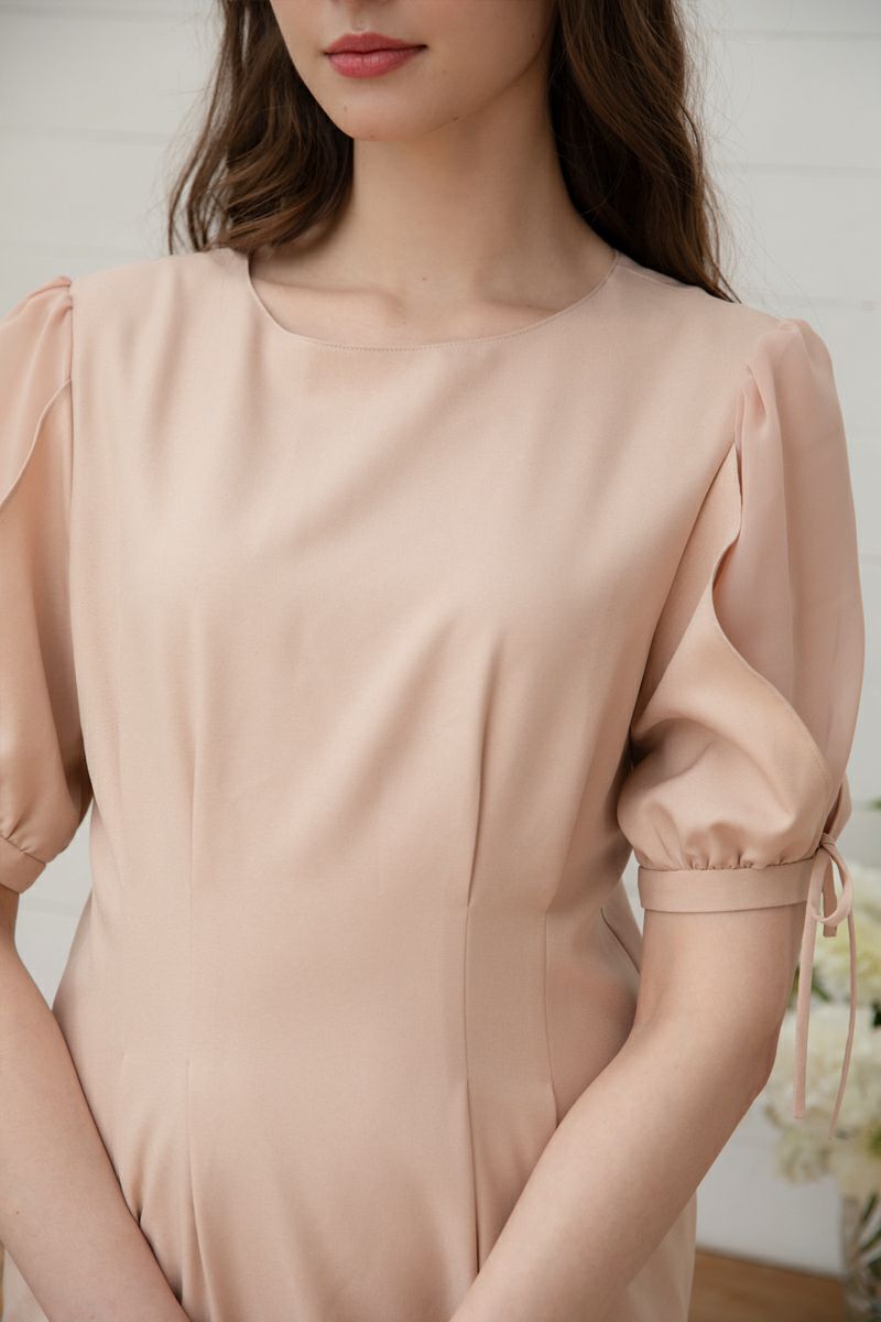 シフォンスリーブカットロングワンピース