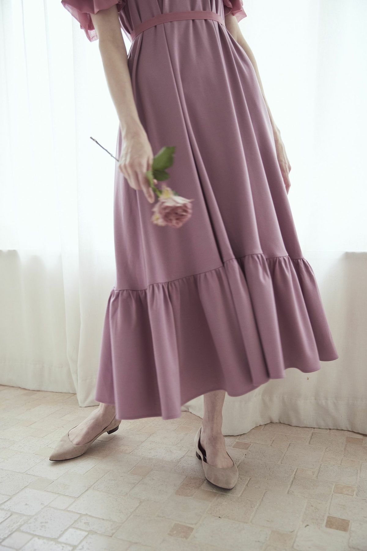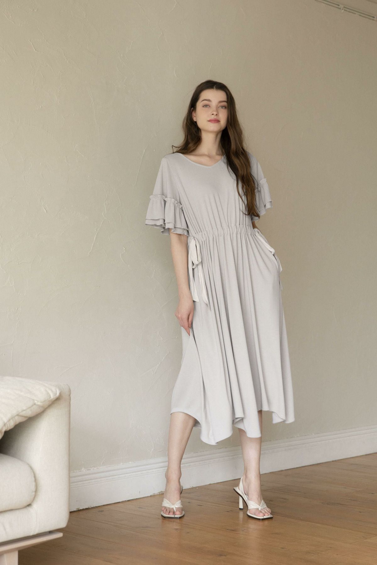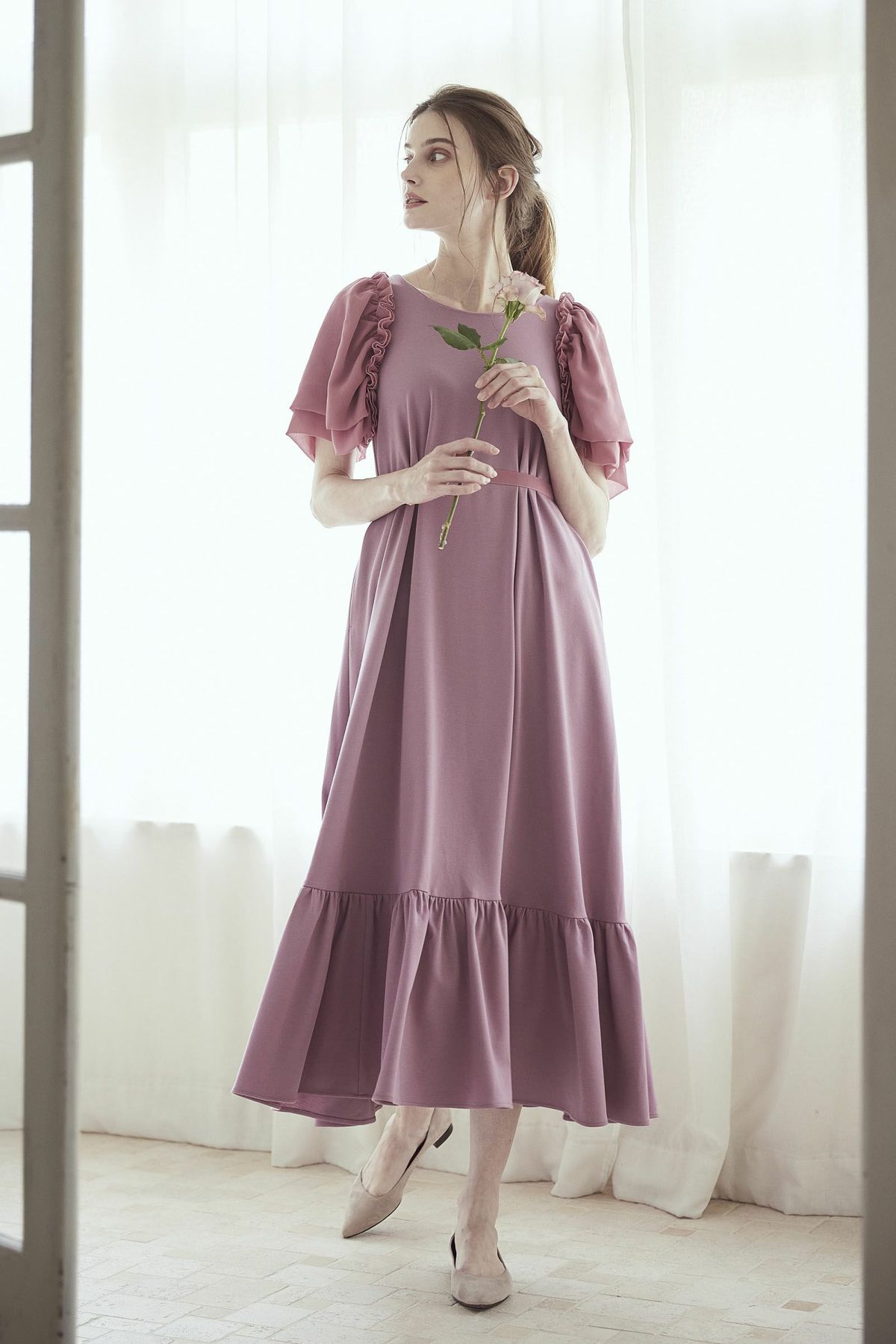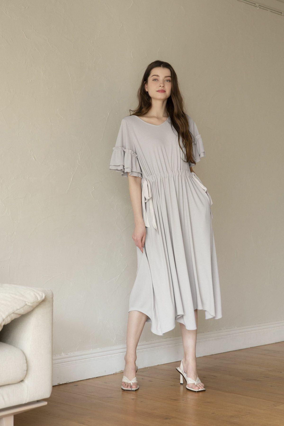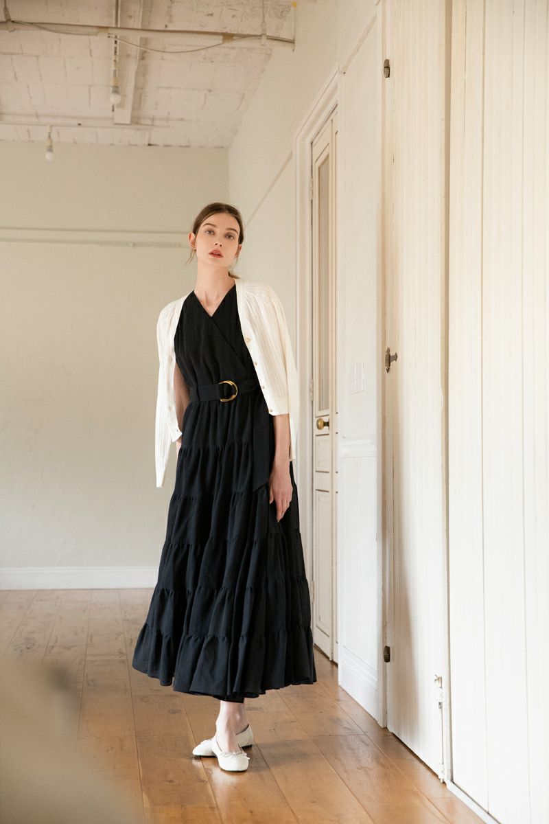 シフォンスリーブカットロングワンピース