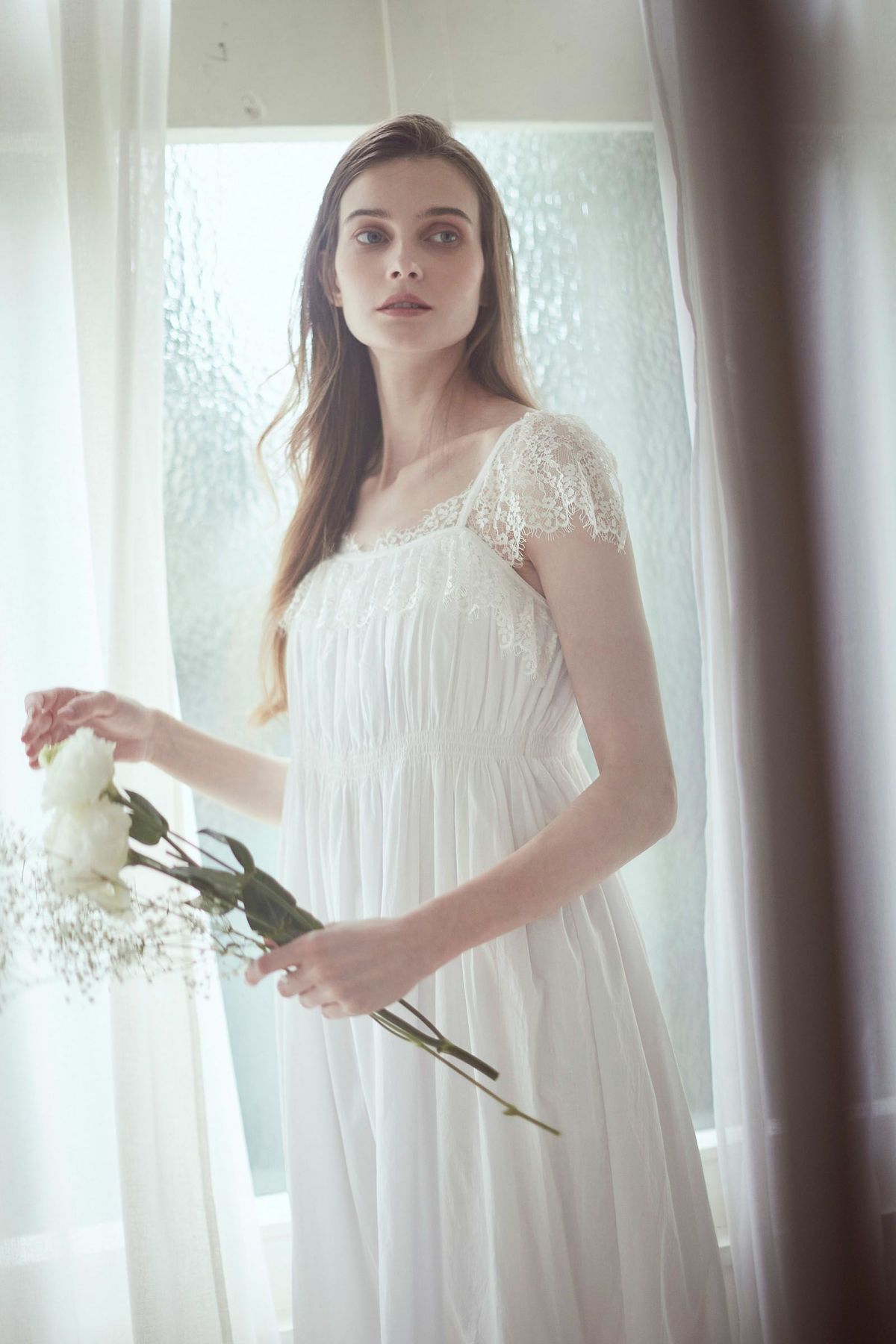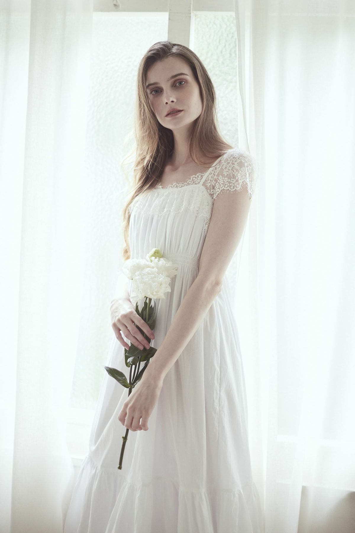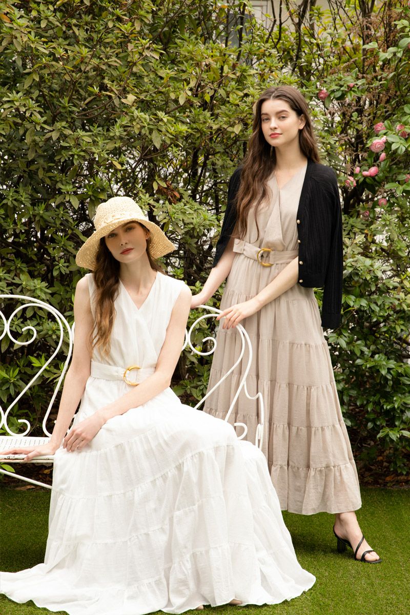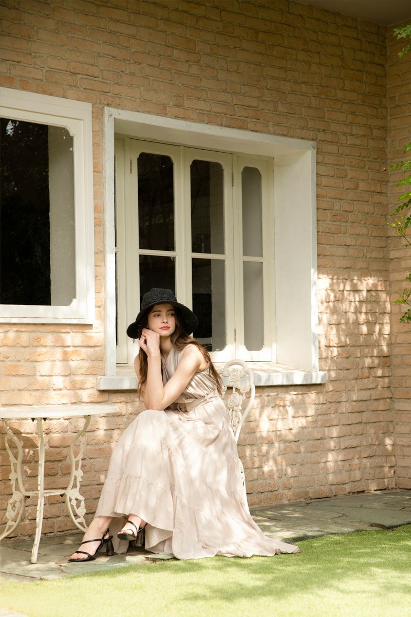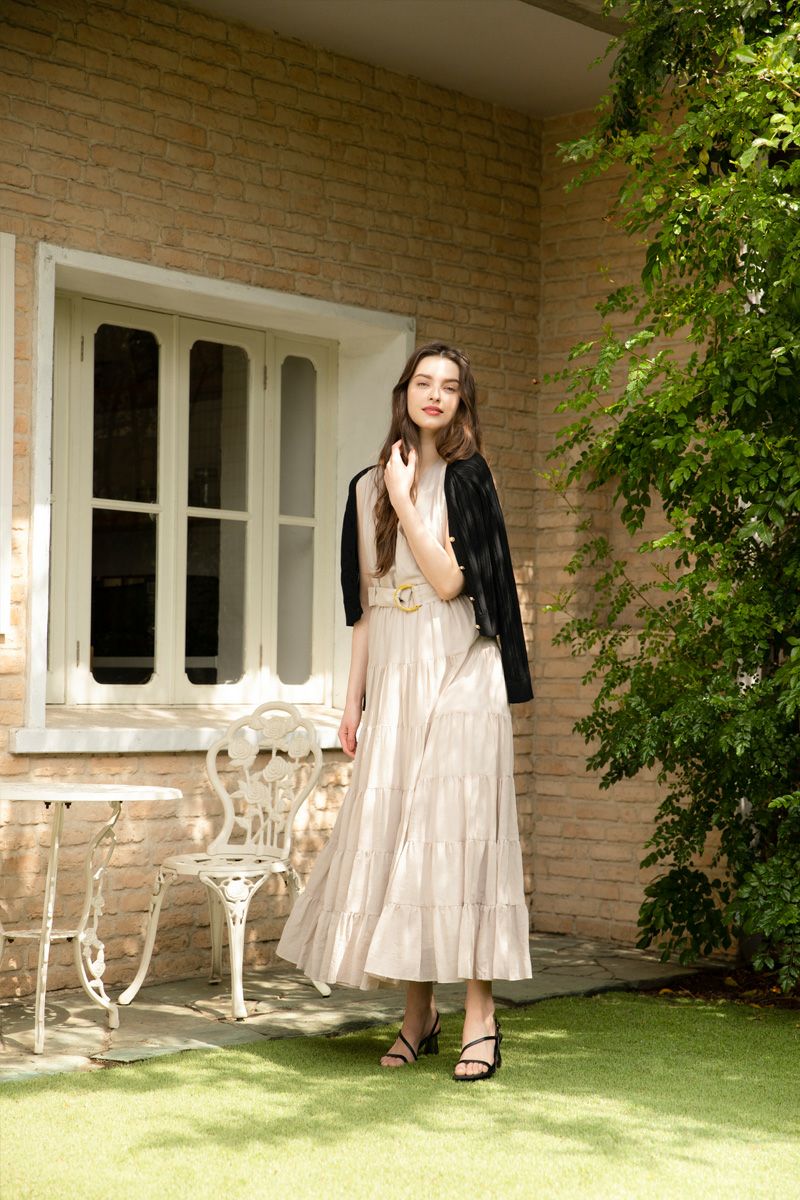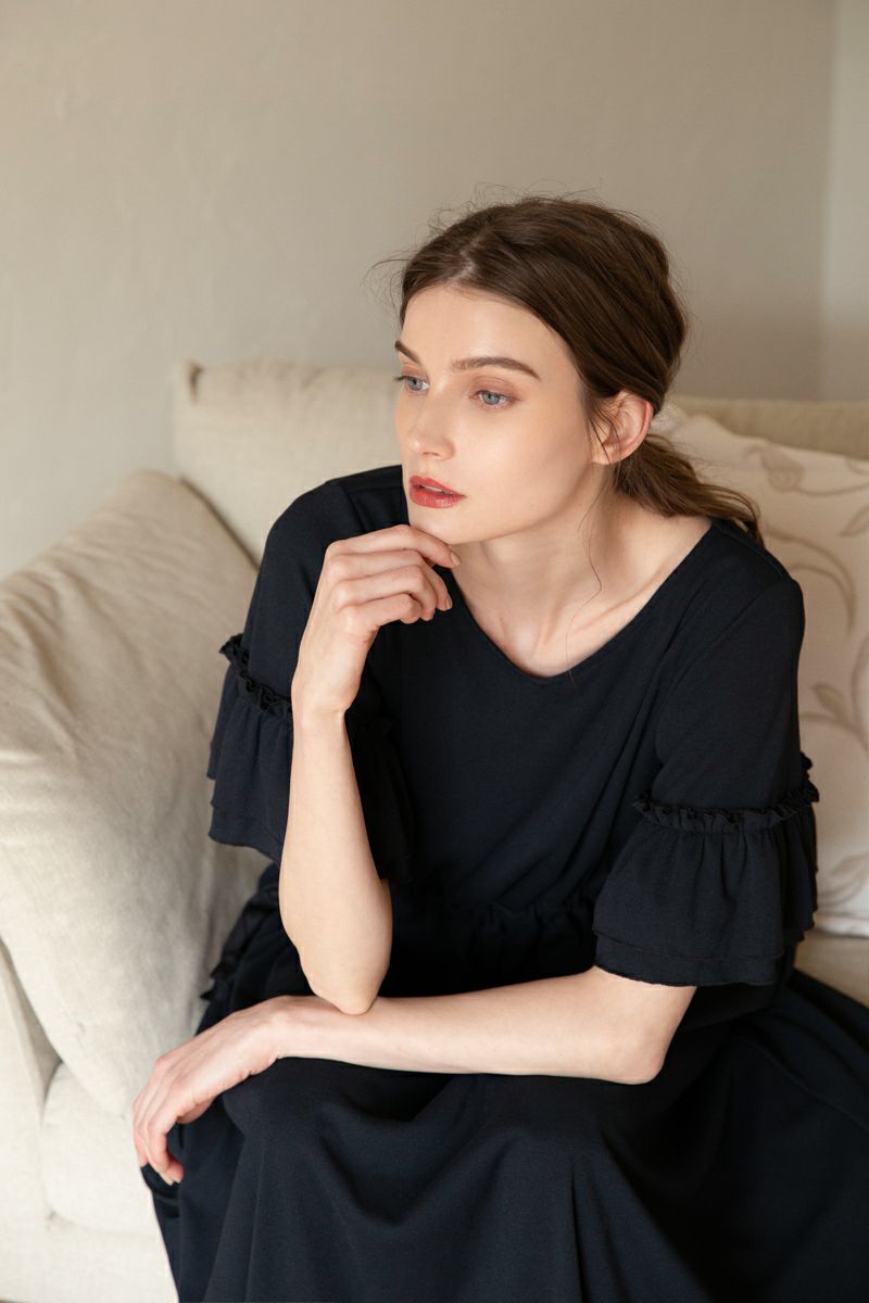 シフォンスリーブカットロングワンピース