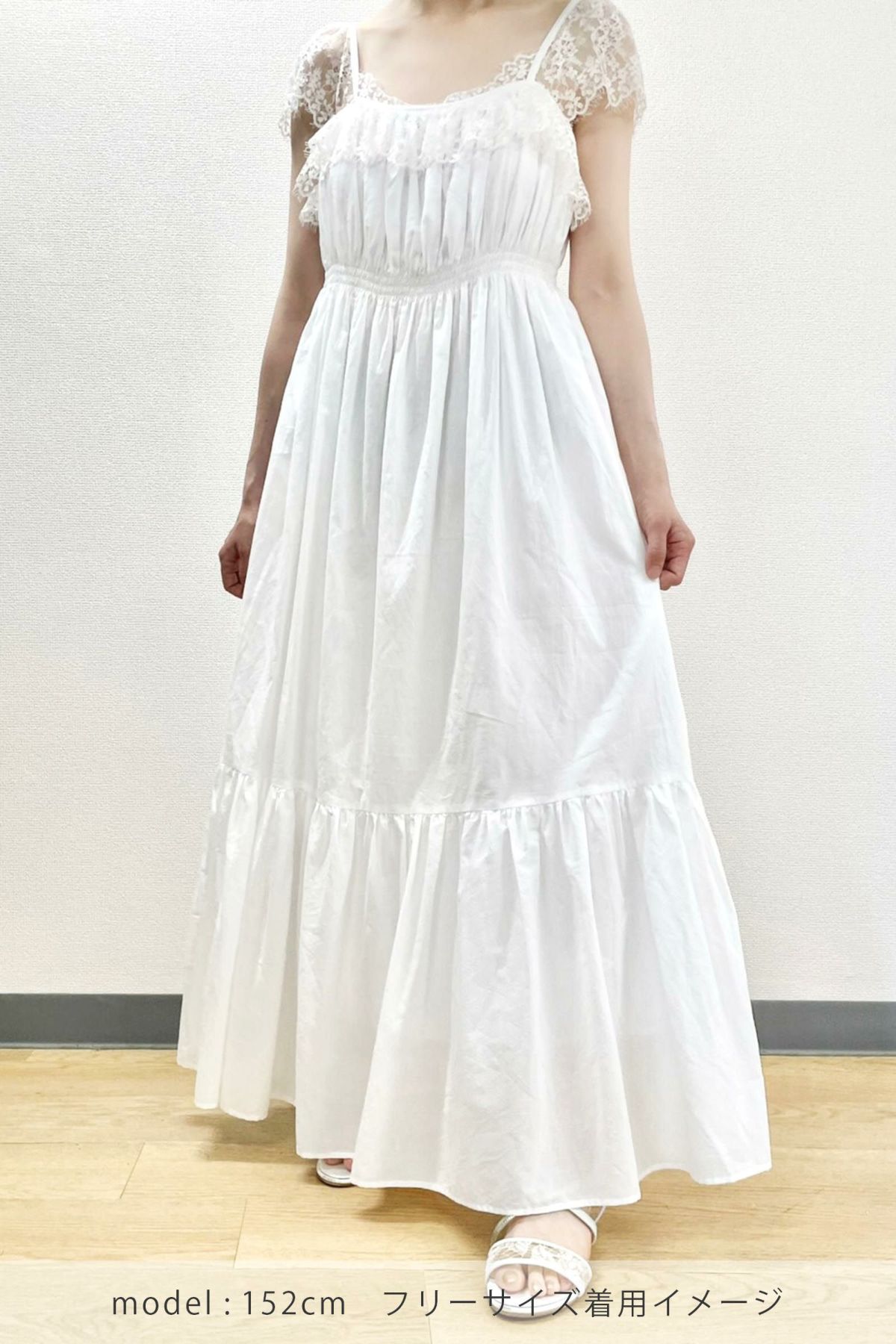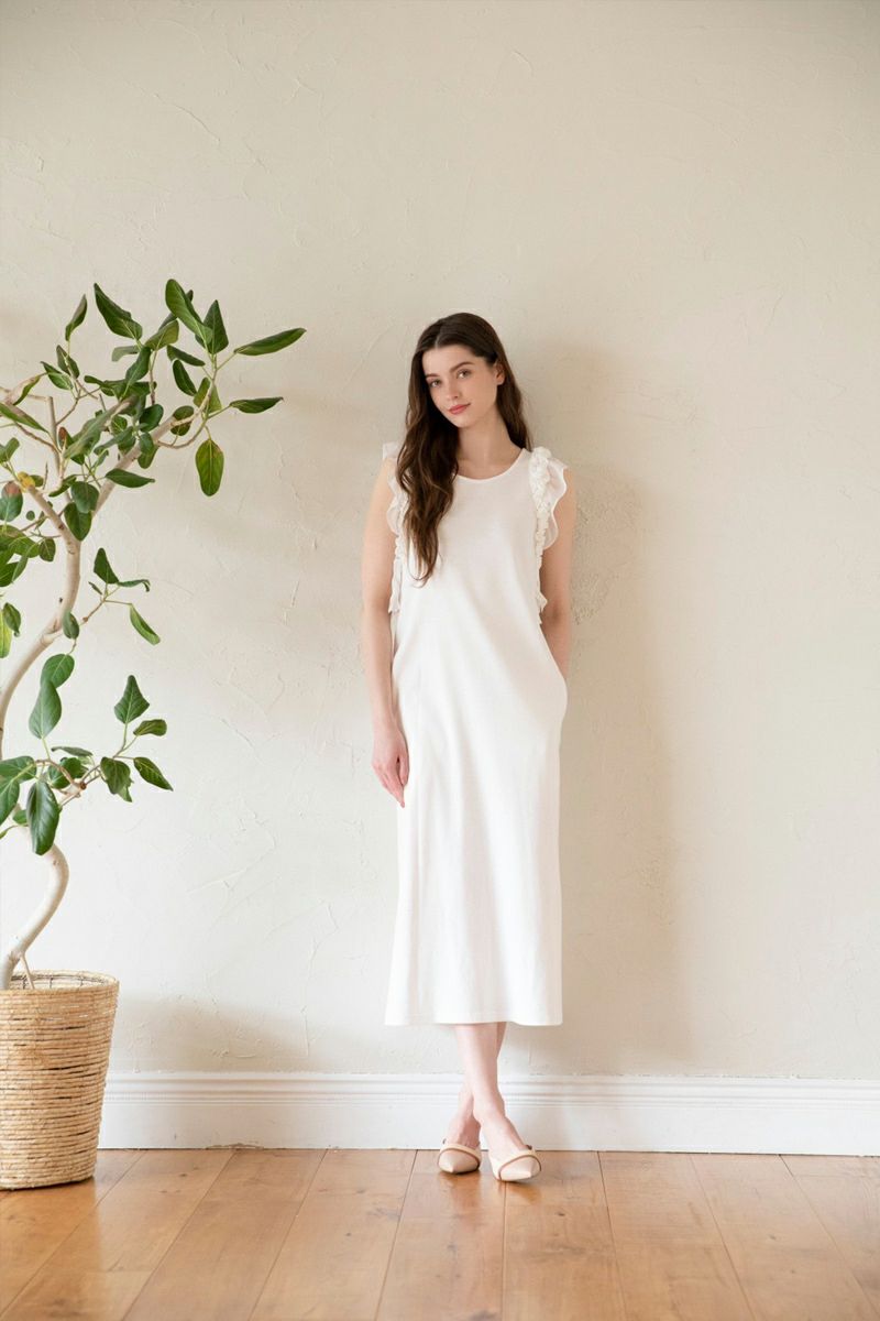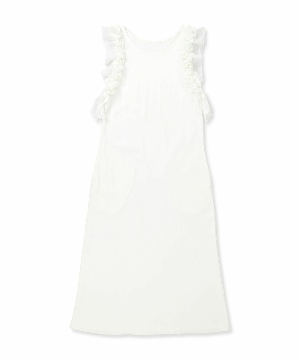 ノースリーブフラワーフリルカットワンピース WHITE