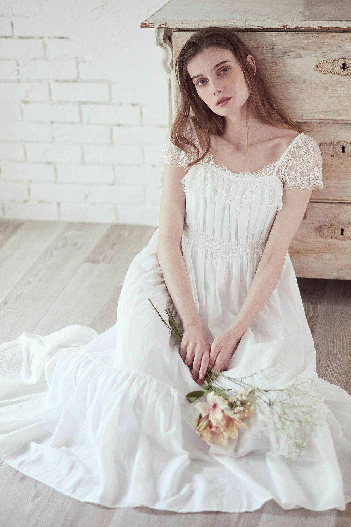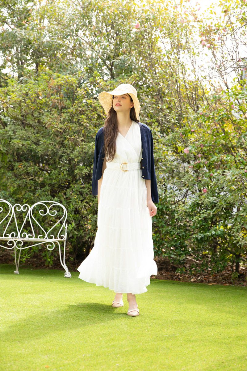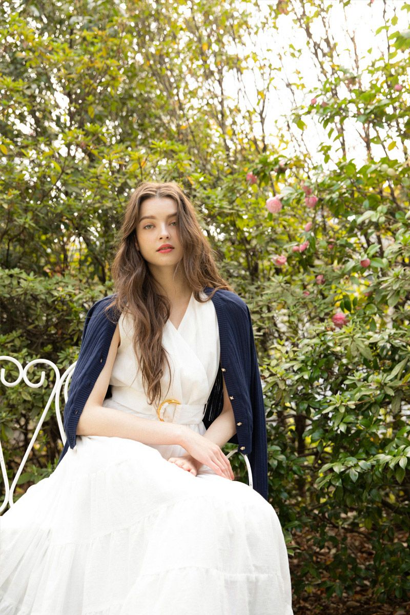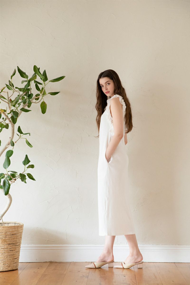 ノースリーブフラワーフリルカットワンピース WHITE