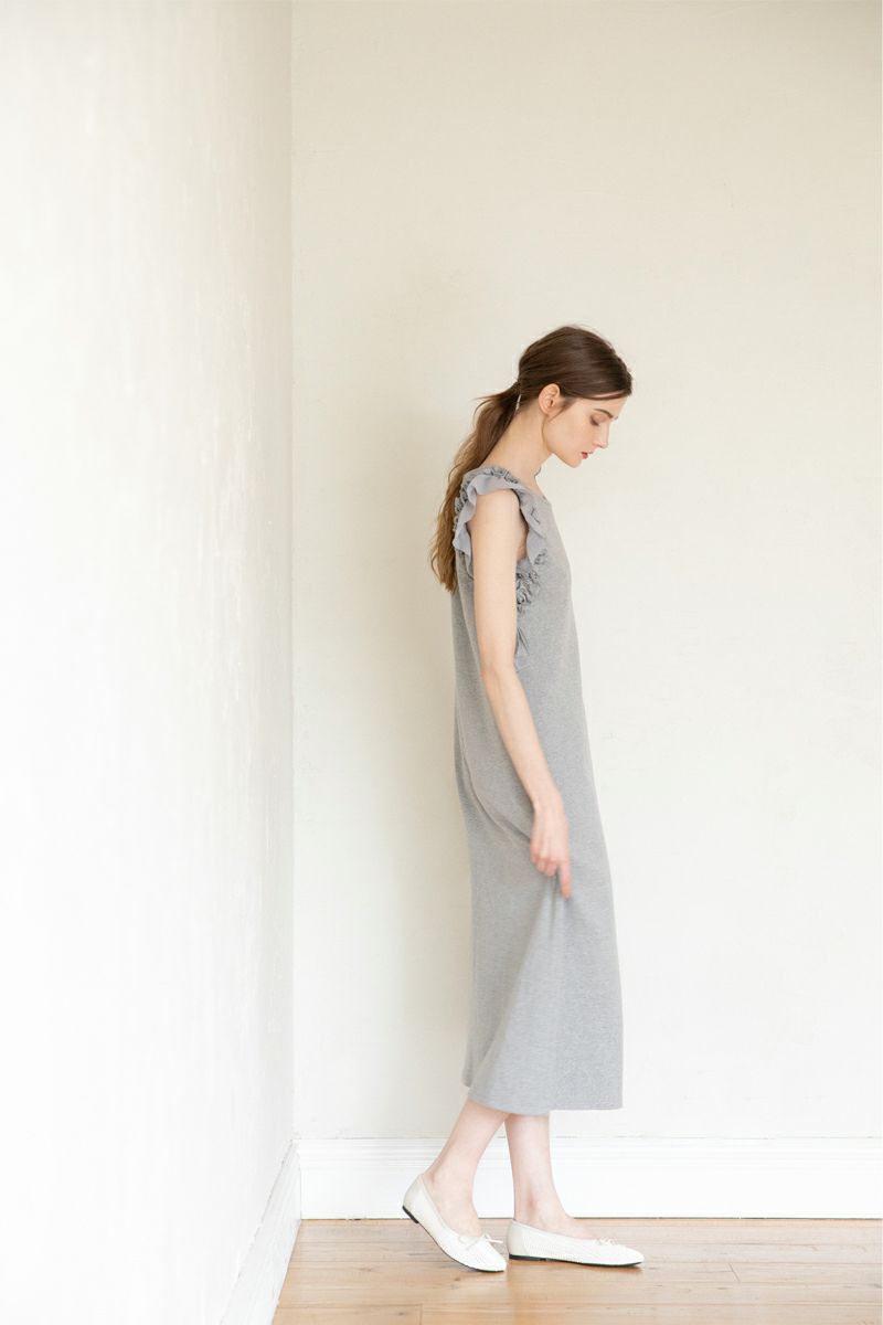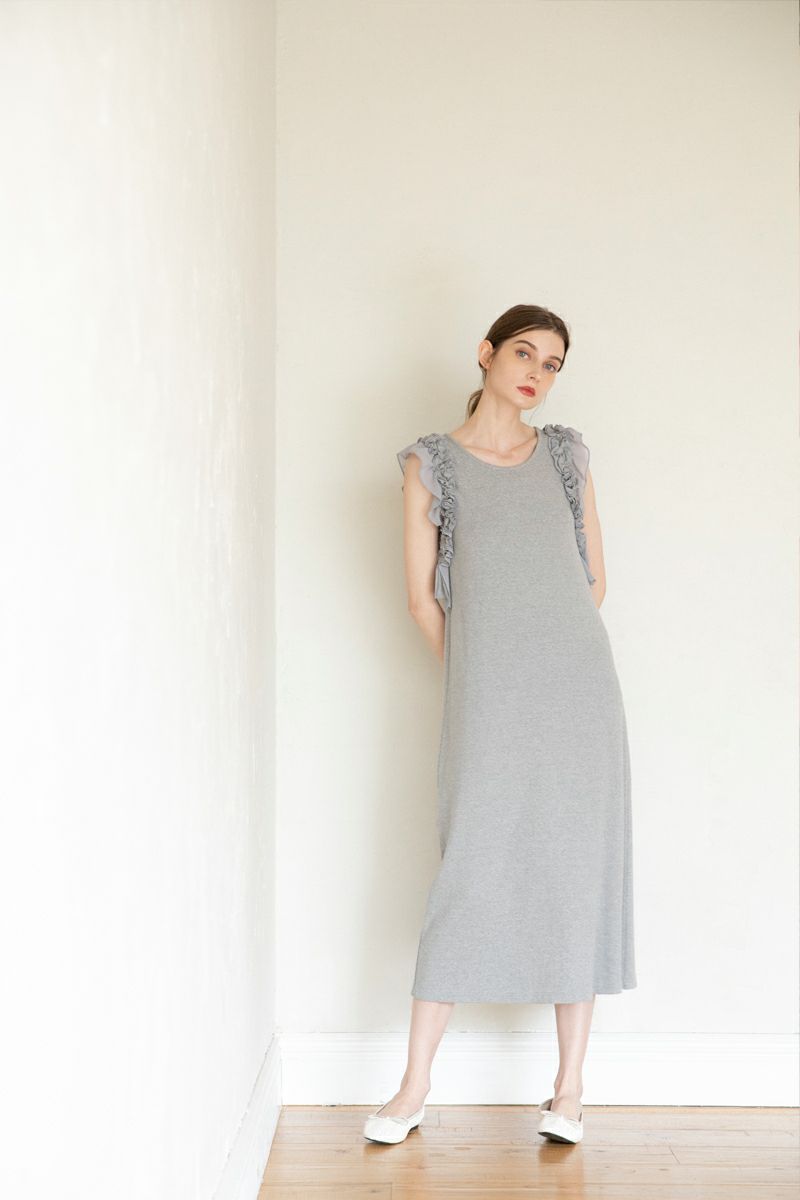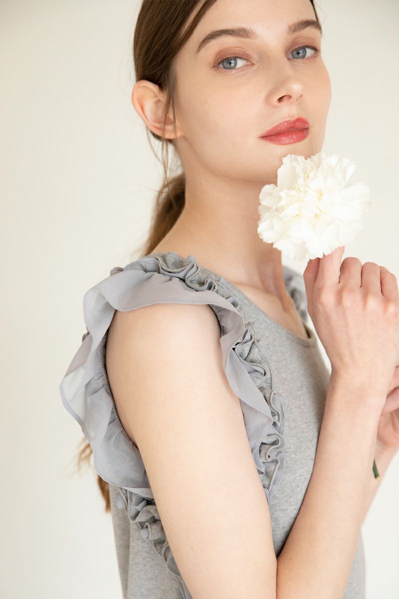 ノースリーブフラワーフリルカットワンピース GRAY