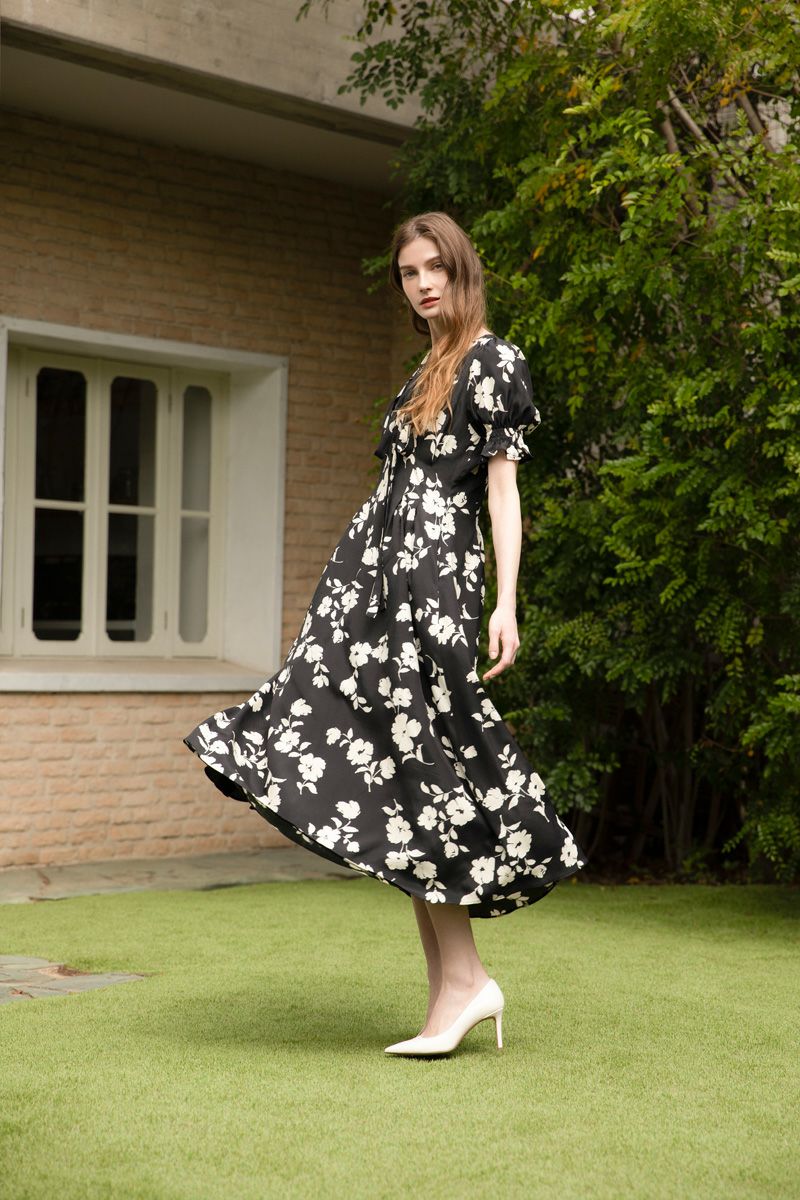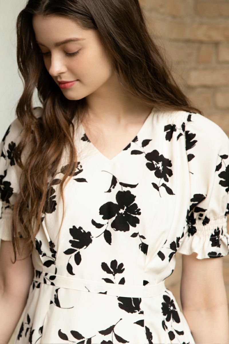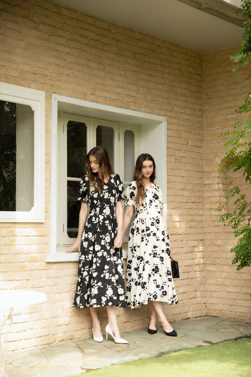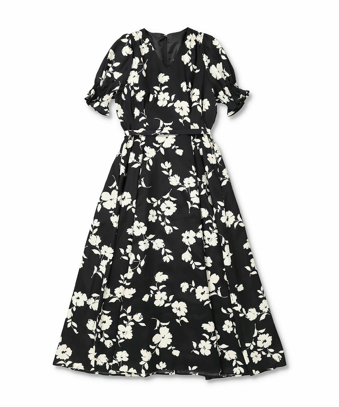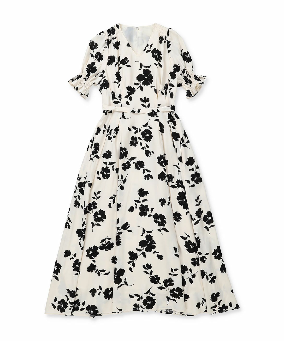 【再入荷】フラワープリントドレス IVORY × BLACK