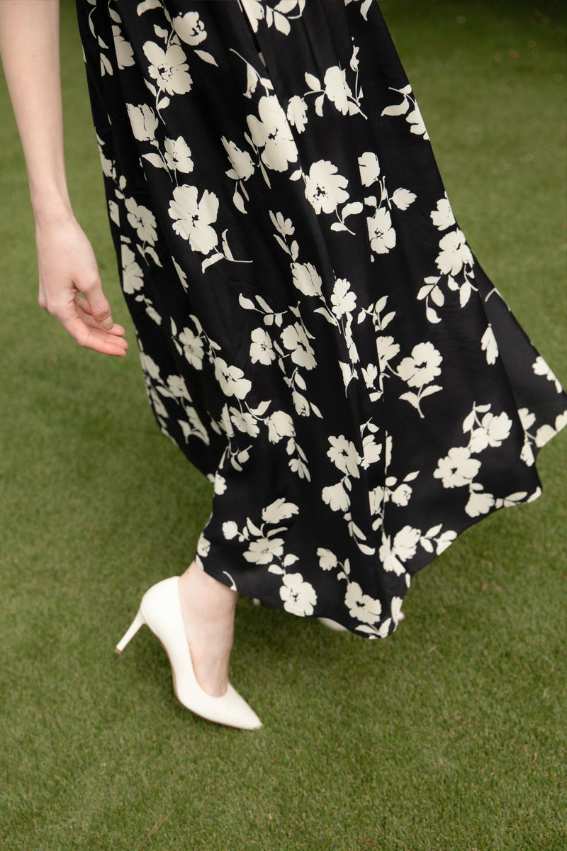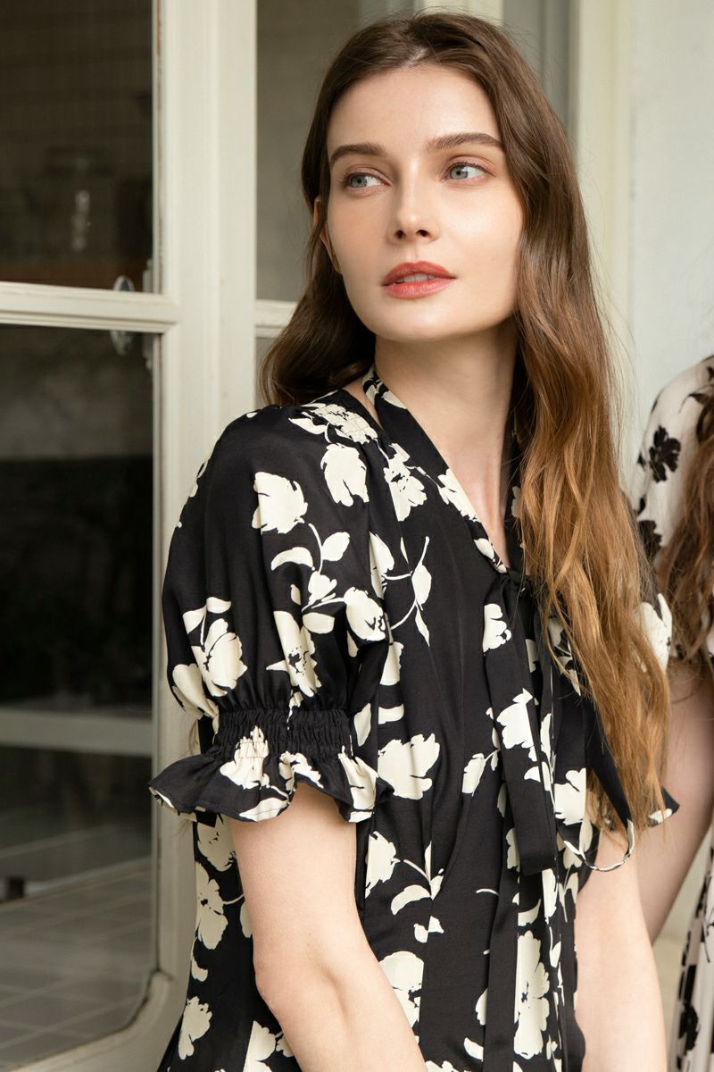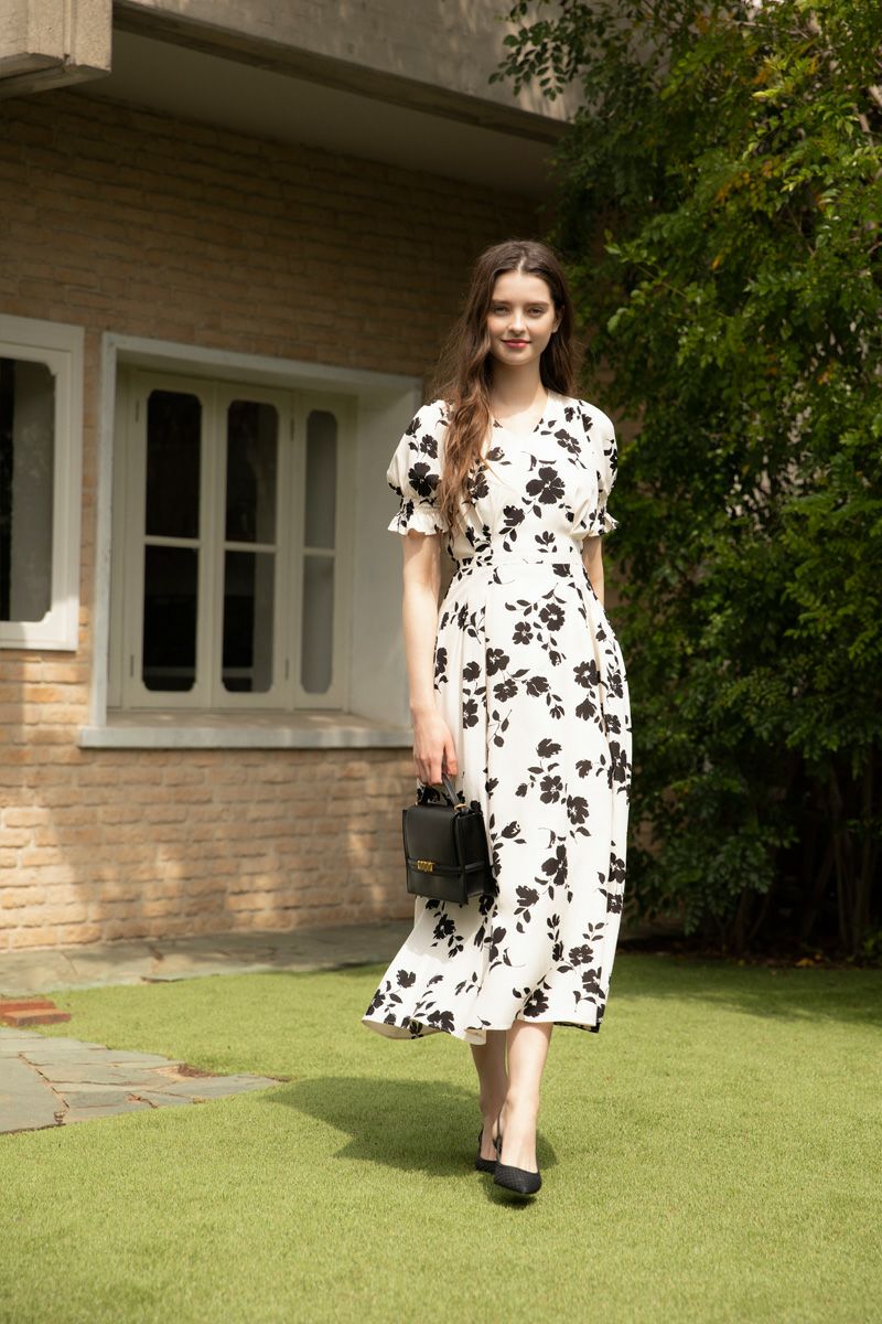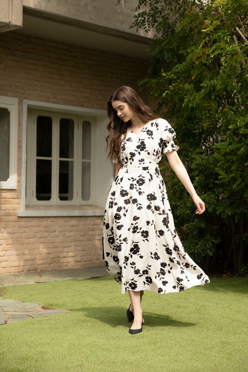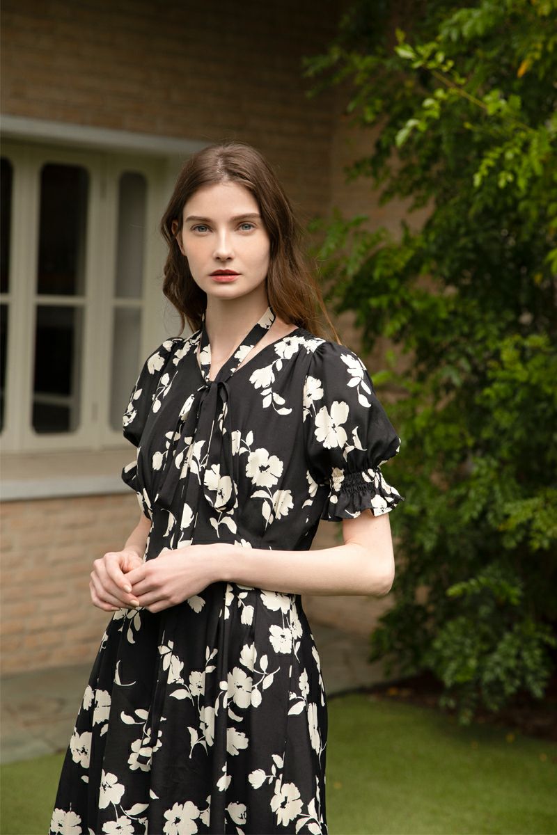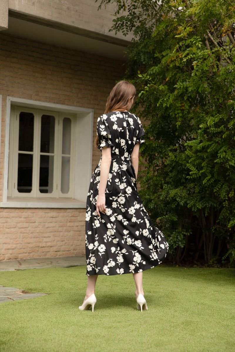 【再入荷】フラワープリントドレス IVORY × BLACK