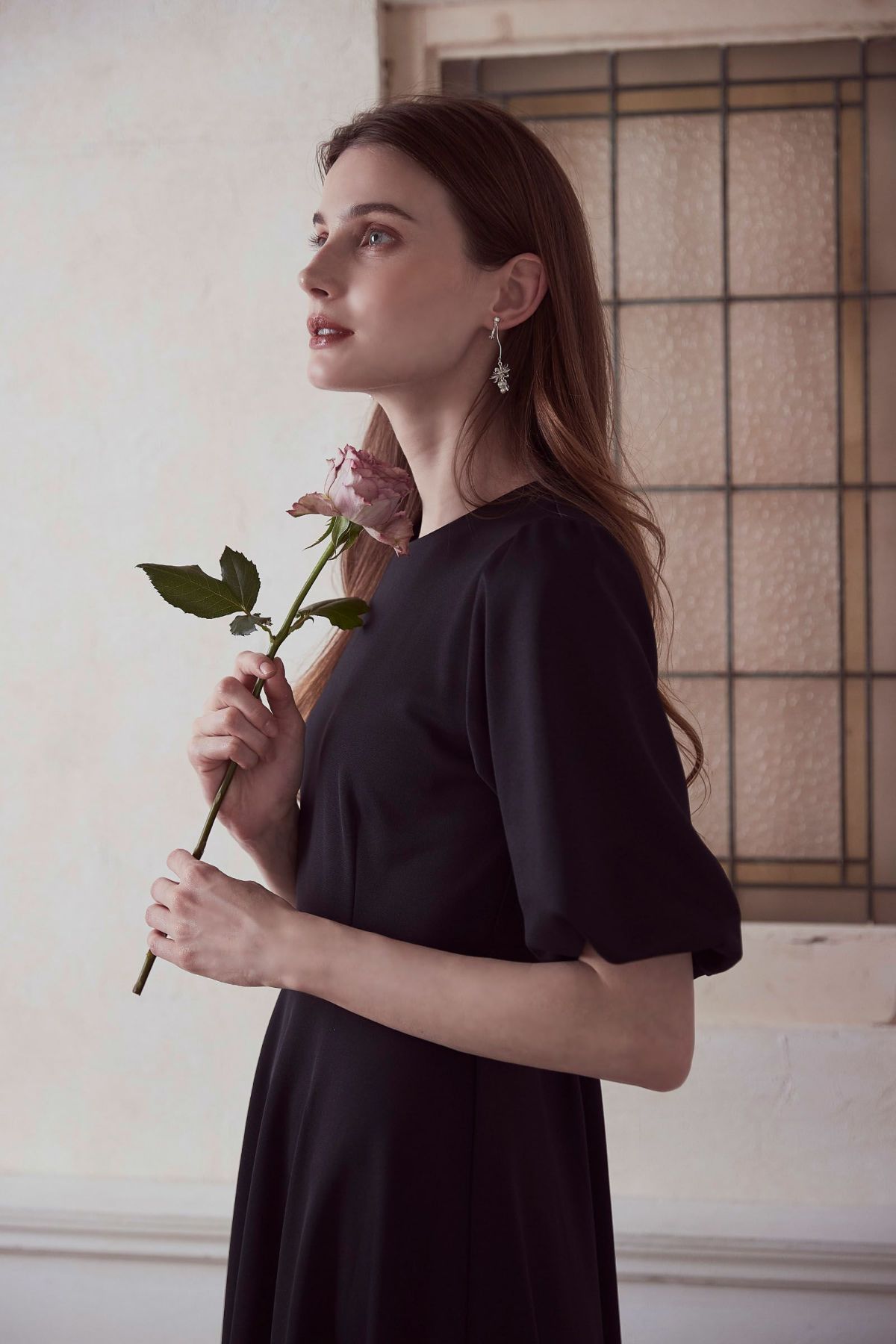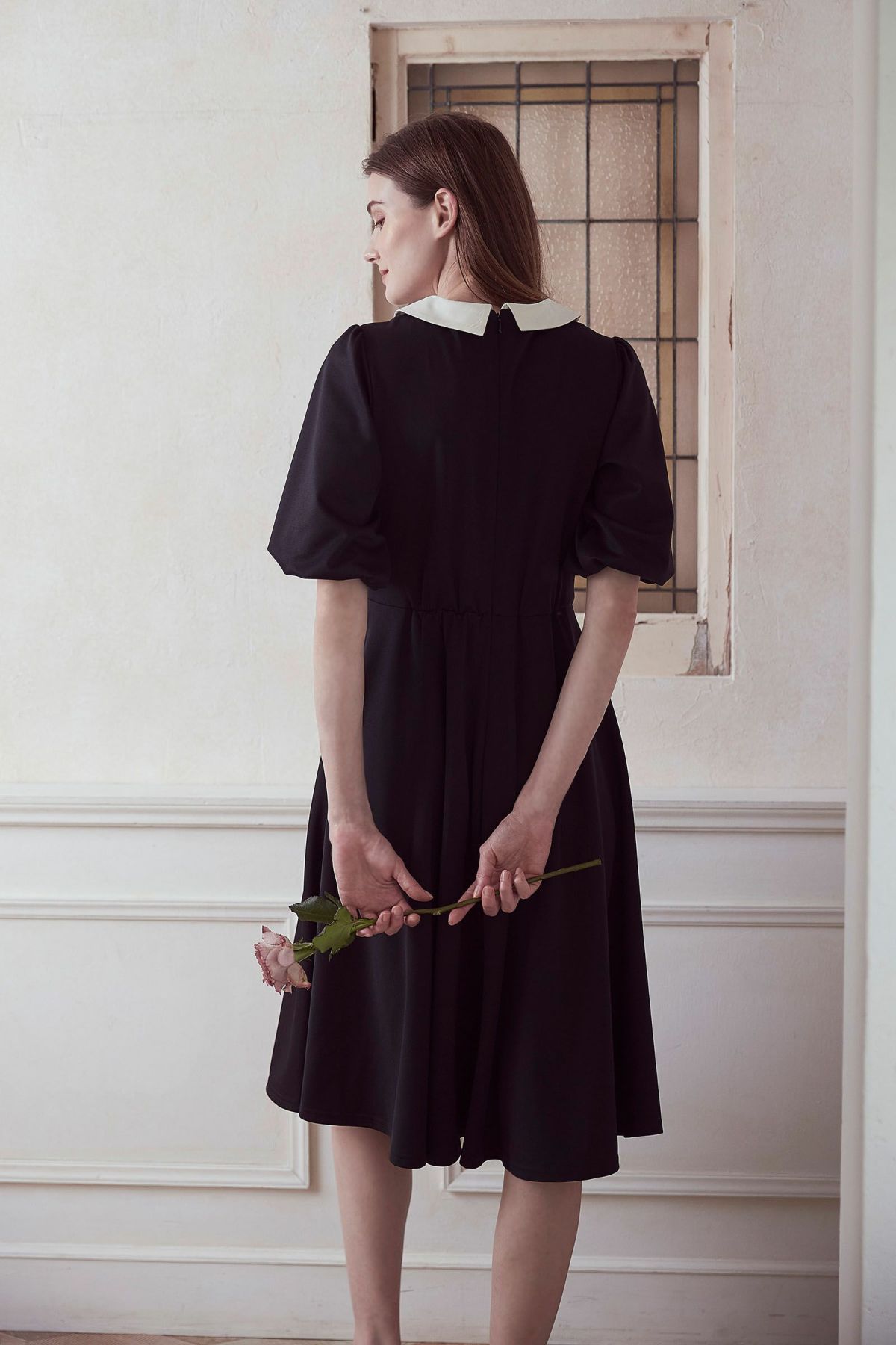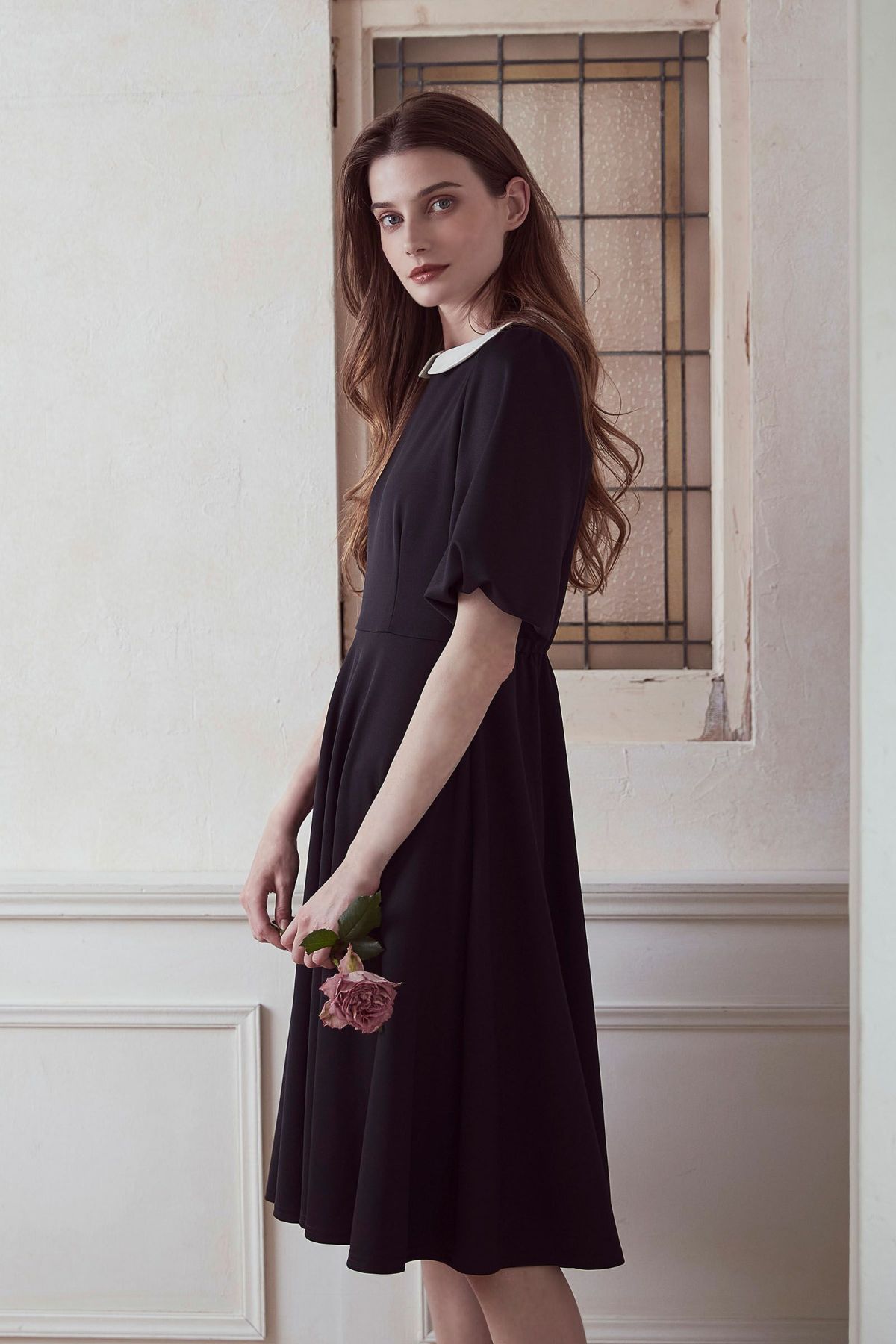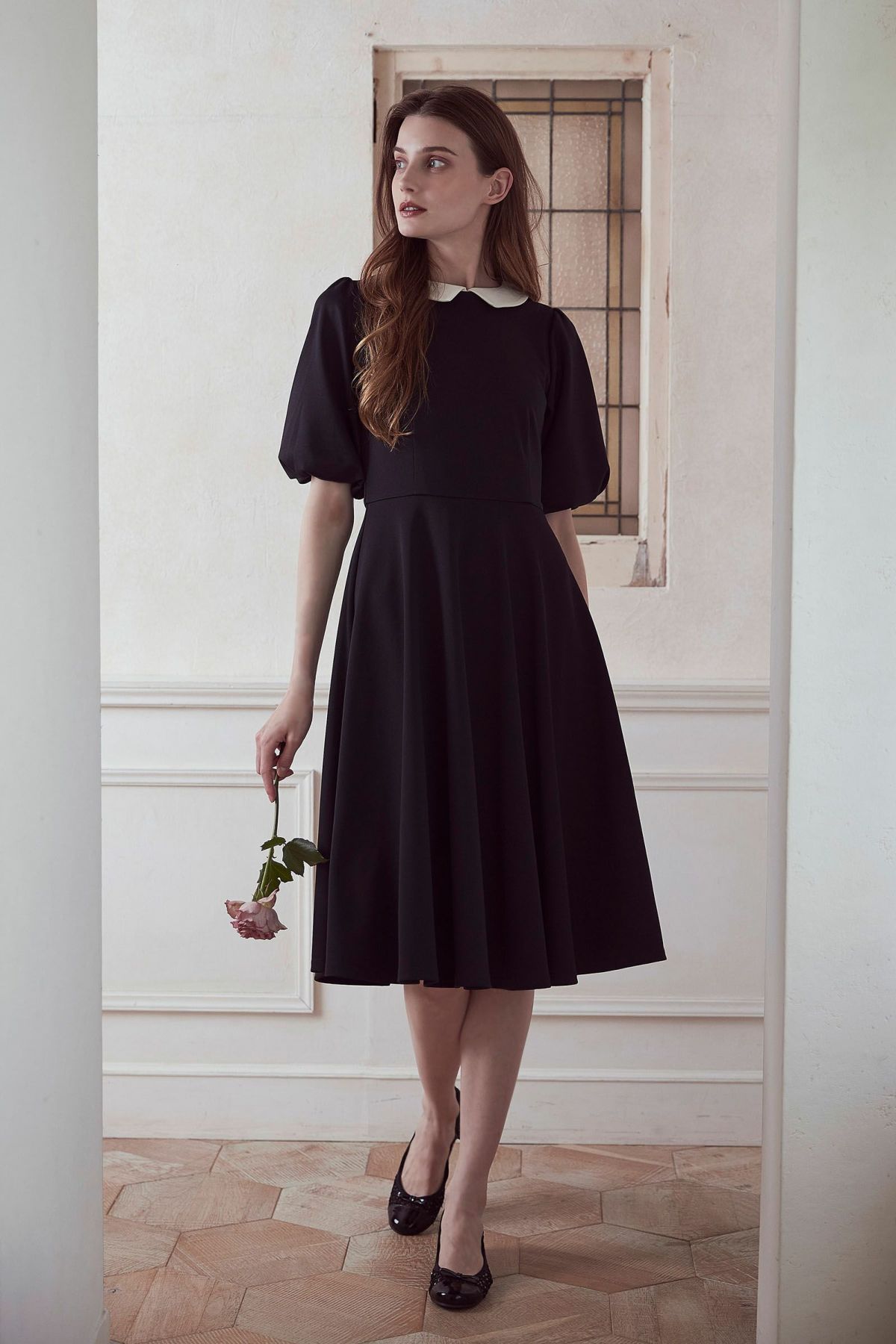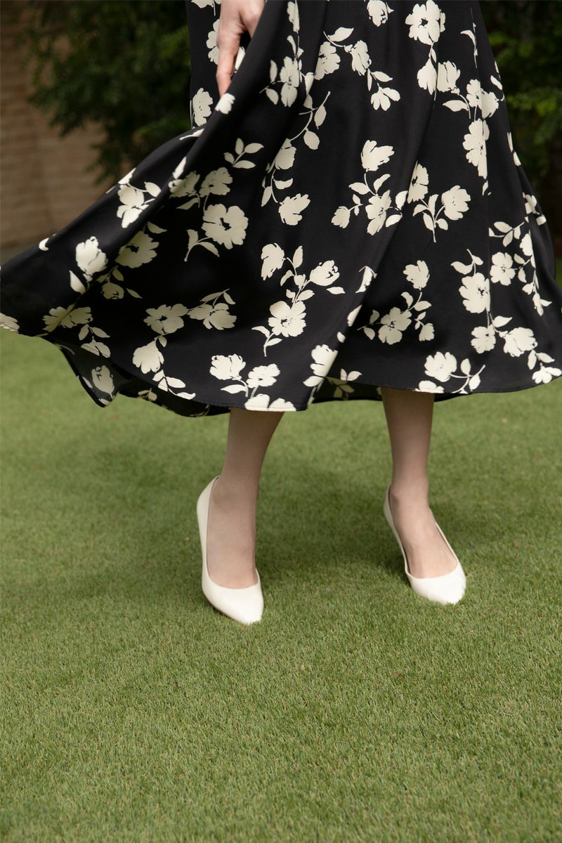 【再入荷】フラワープリントドレス IVORY × BLACK
