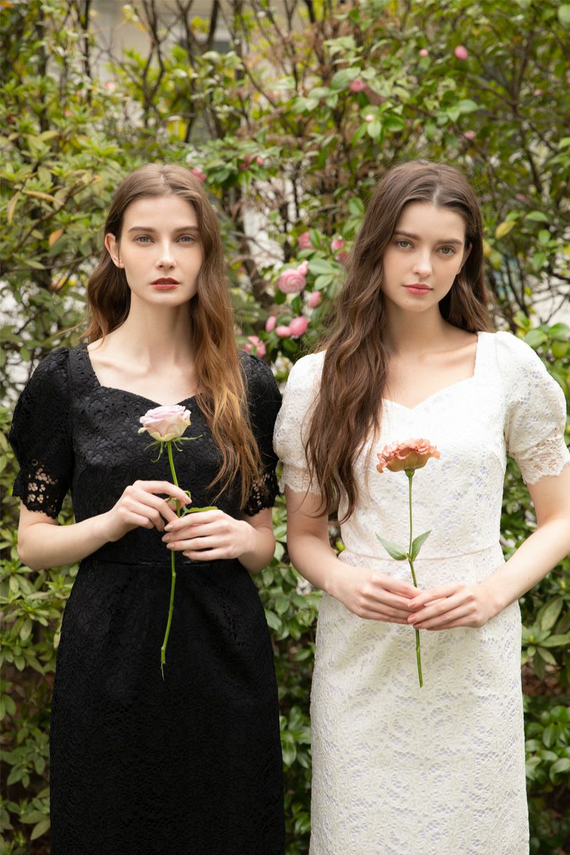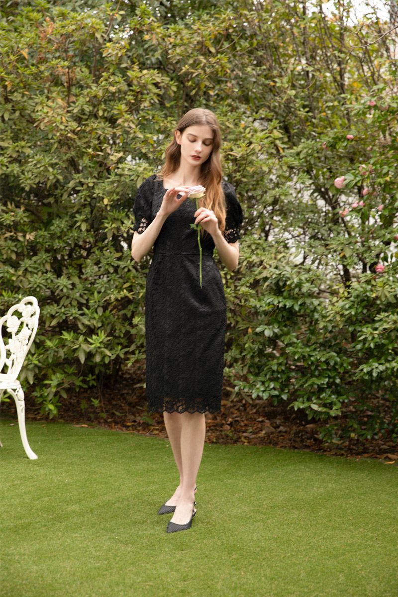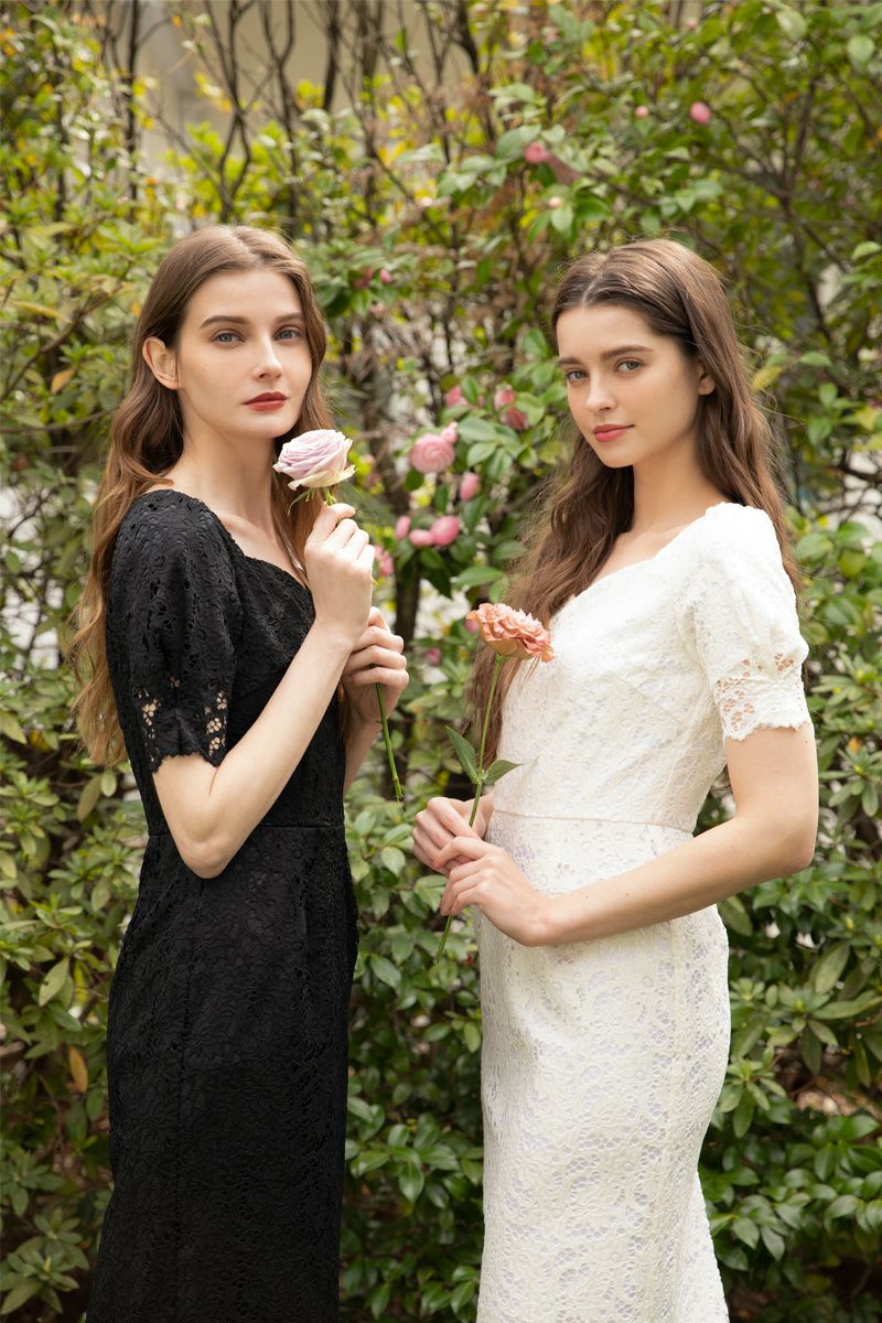 デコルテカットラインレースワンピース