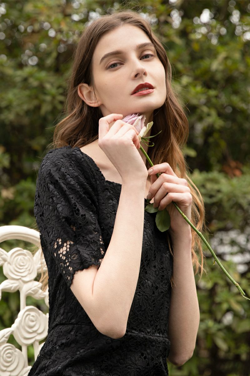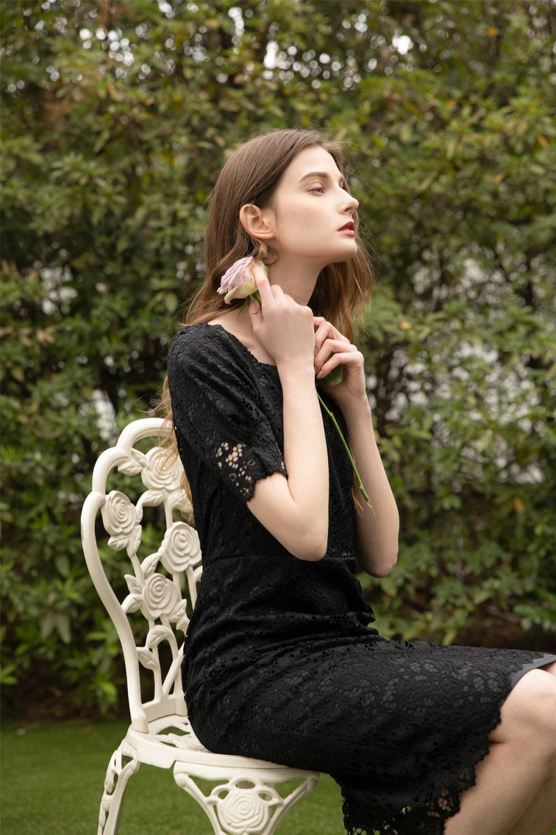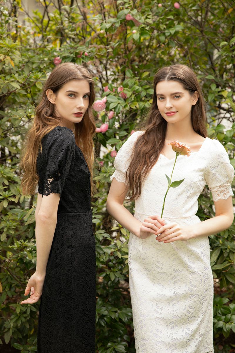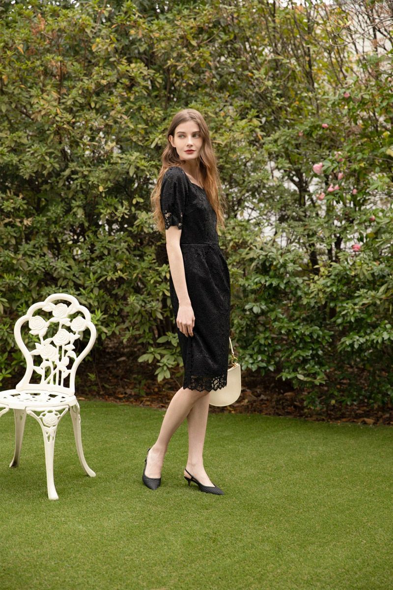 デコルテカットラインレースワンピース