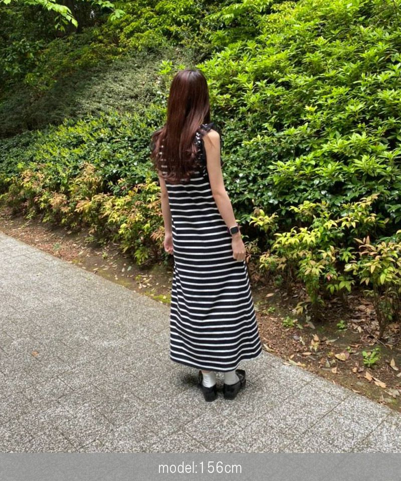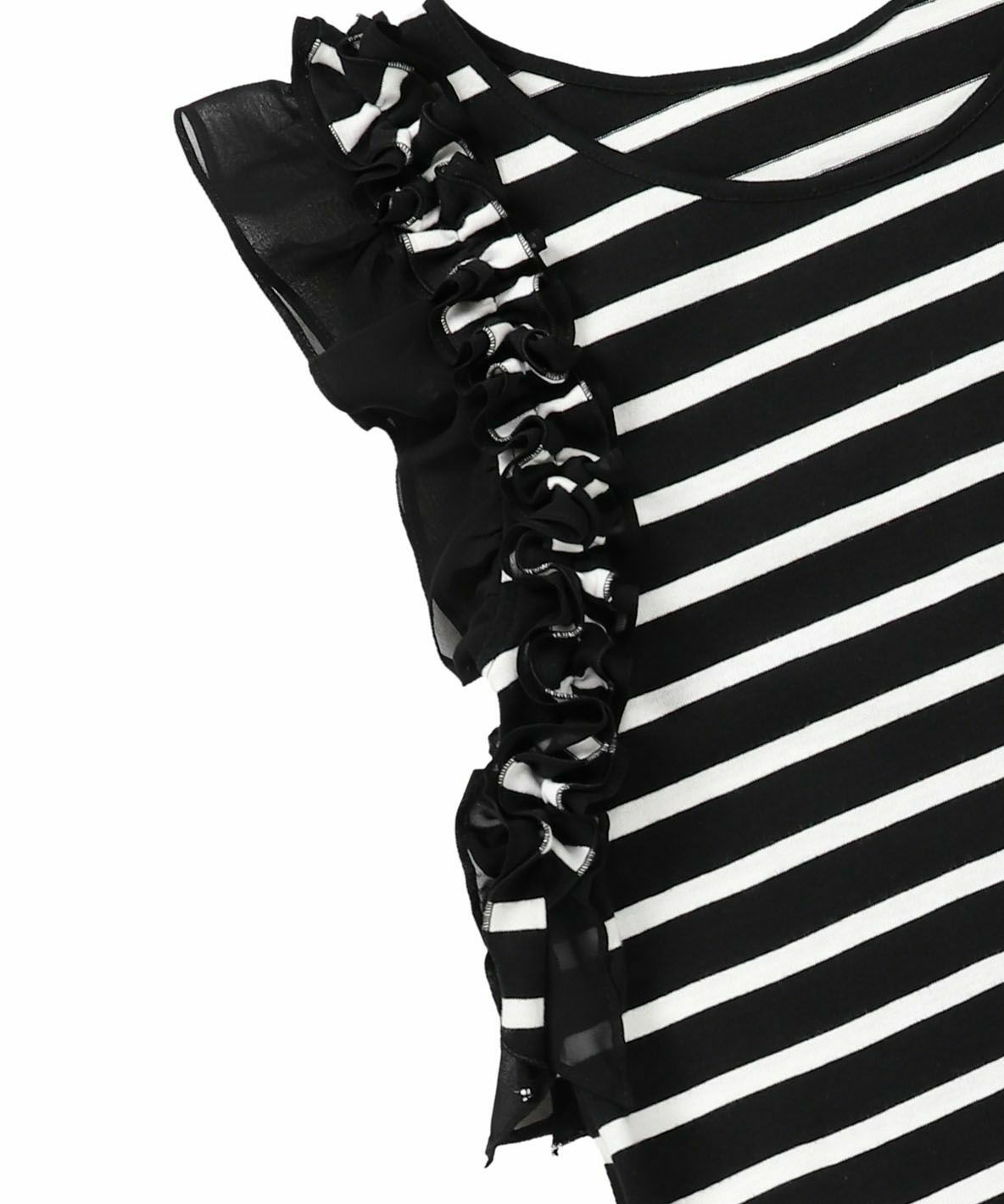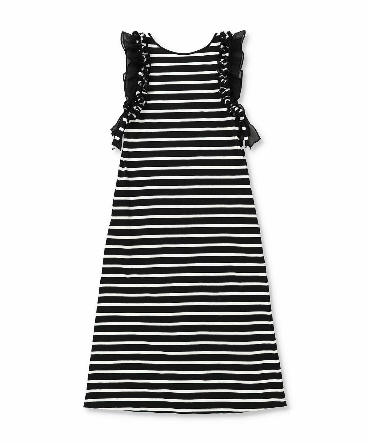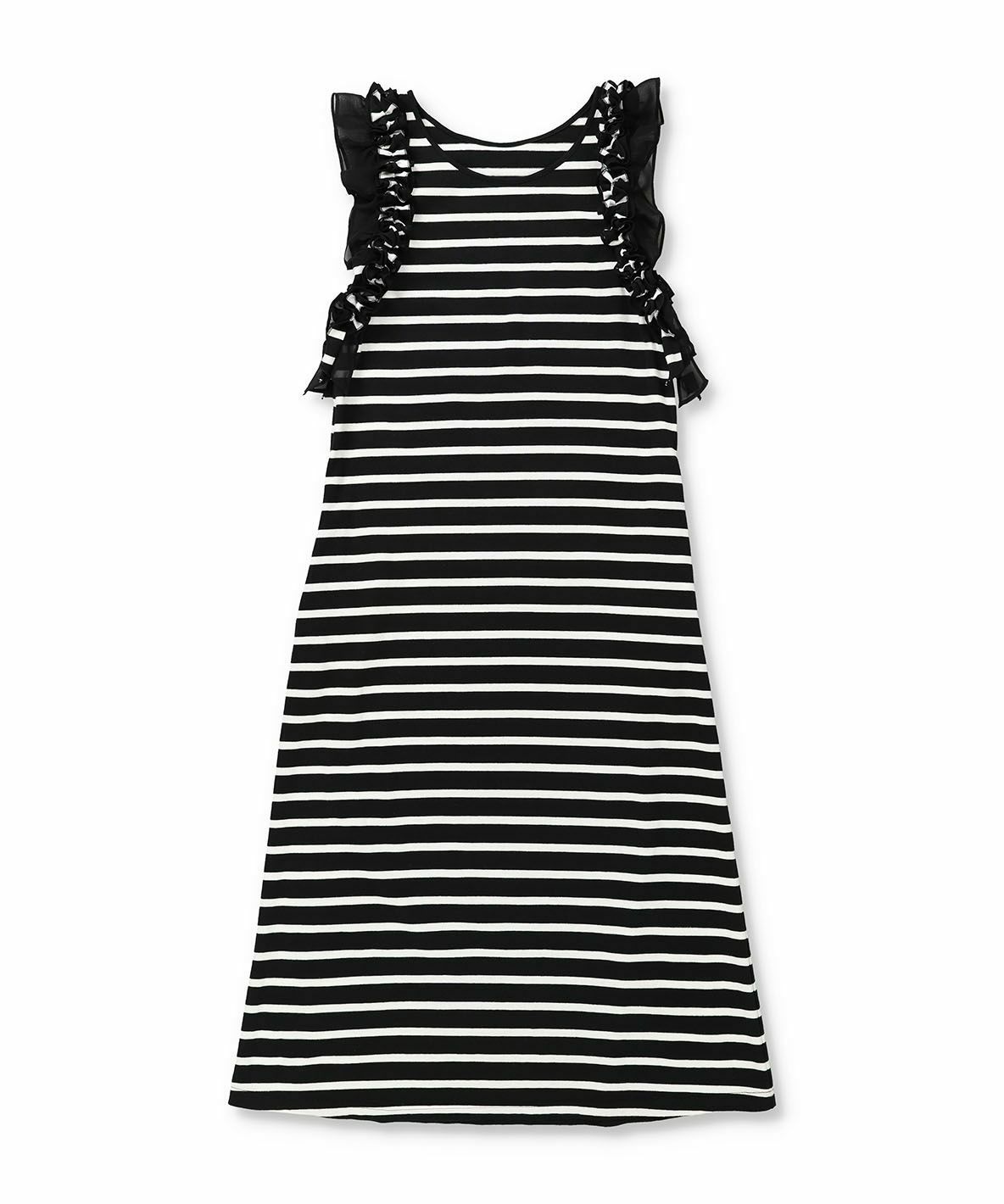 ノースリーブフラワーフリルカットワンピース BK×WH