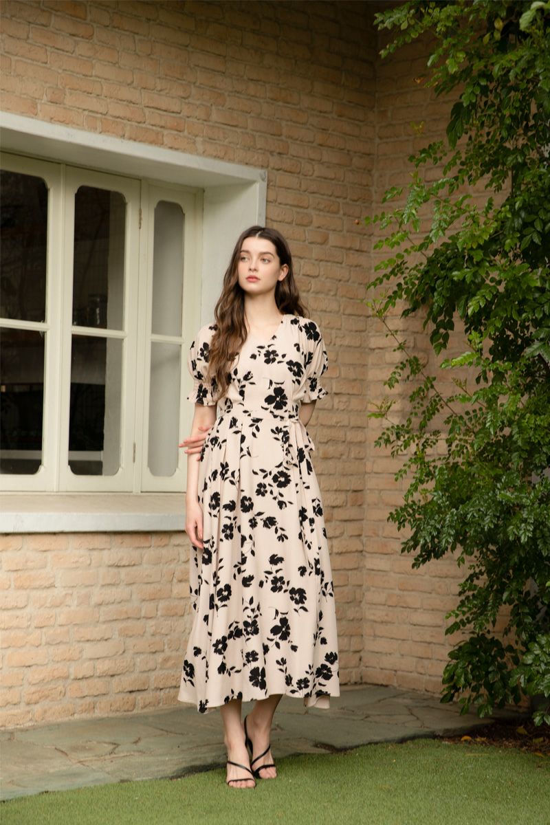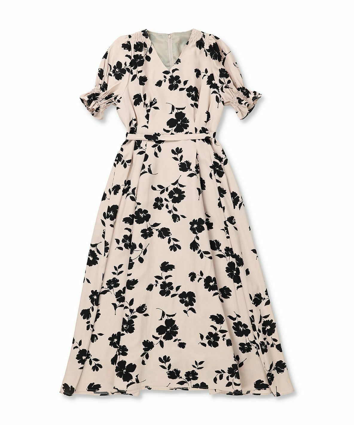 【再入荷】フラワープリントドレス BEIGE ×BLACK