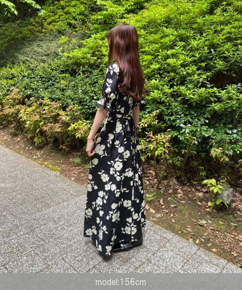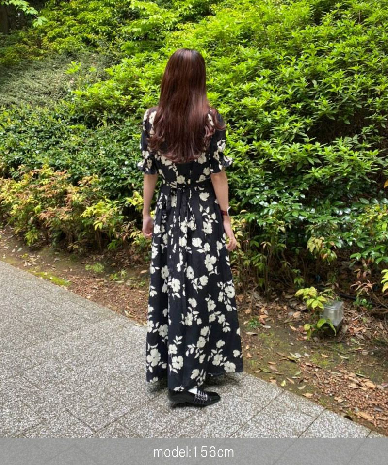 【再入荷】フラワープリントドレス BLACK