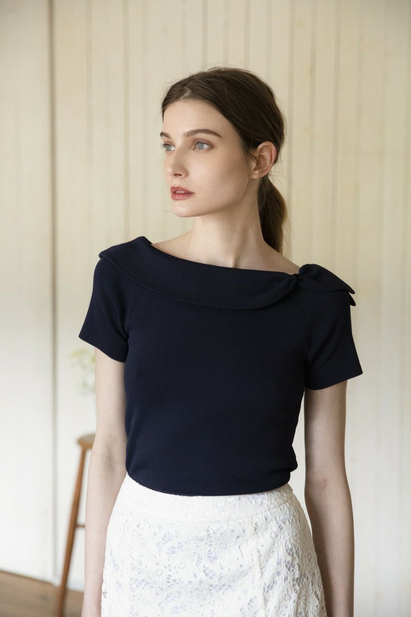 クールタッチロールカラーニットトップス
