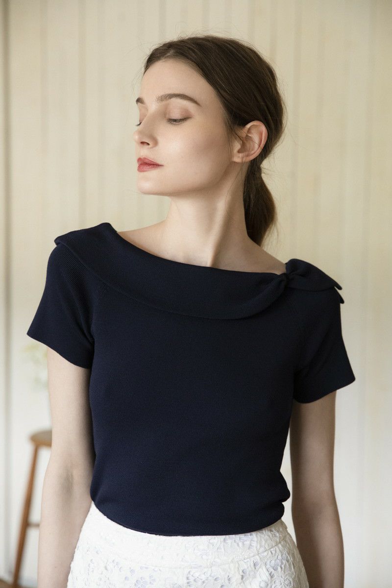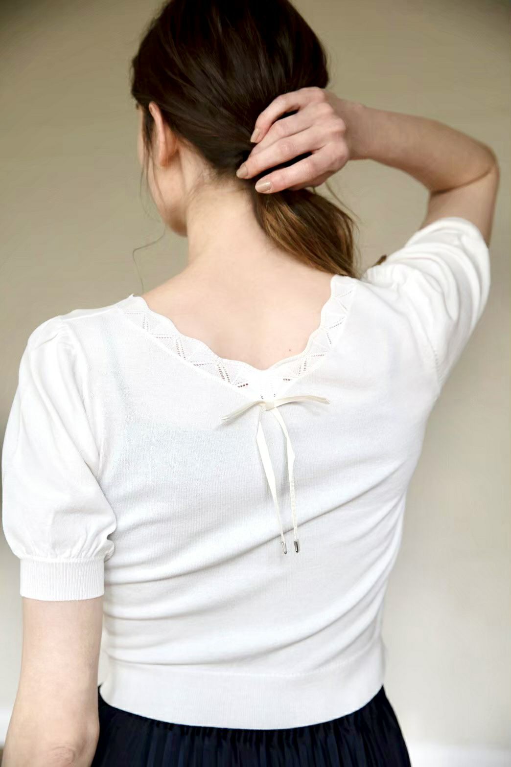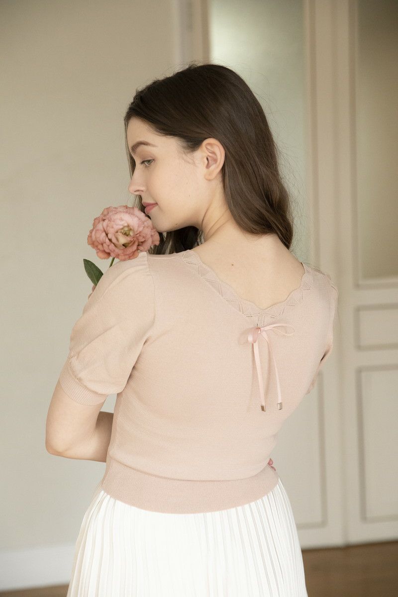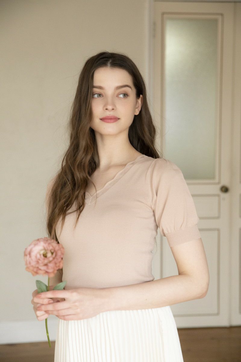 クールタッチパフスリーブニットトップス
