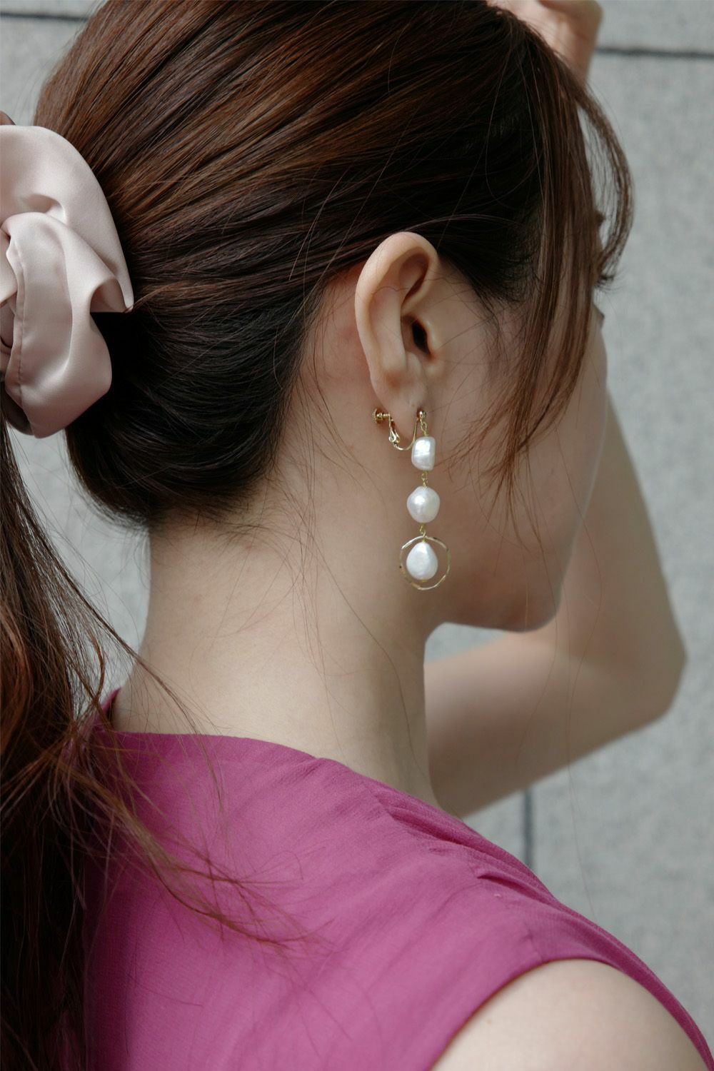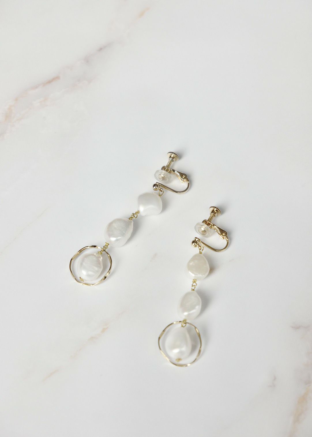 淡水パール3連ロングイヤリング