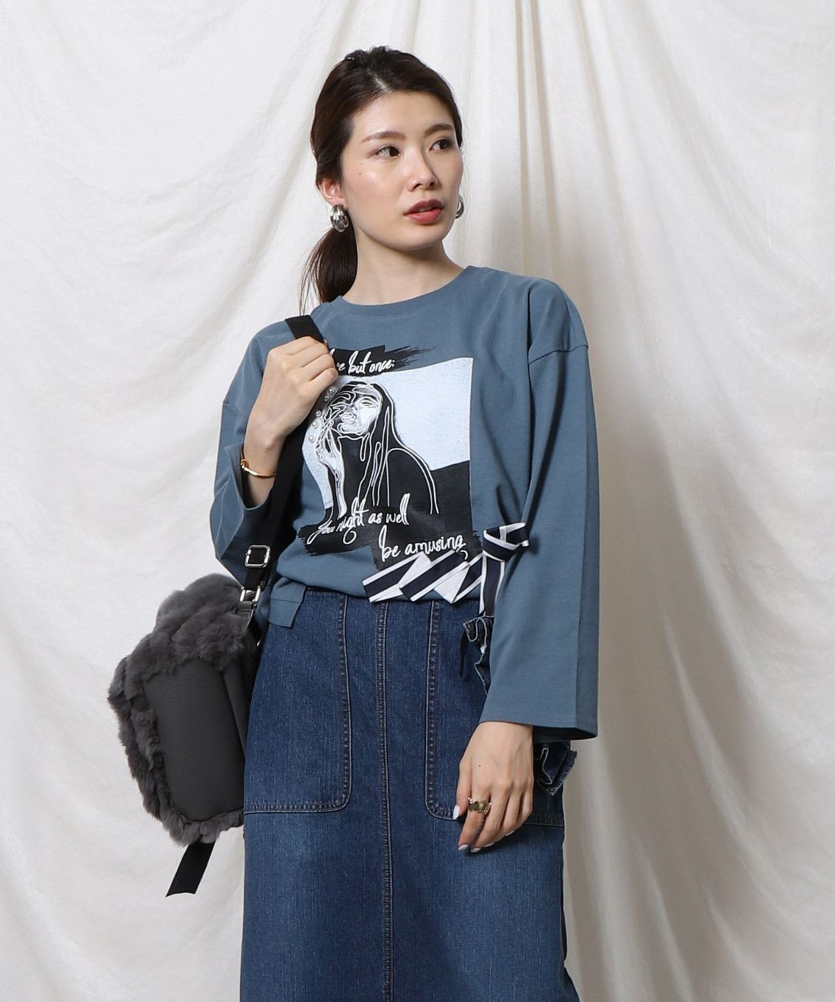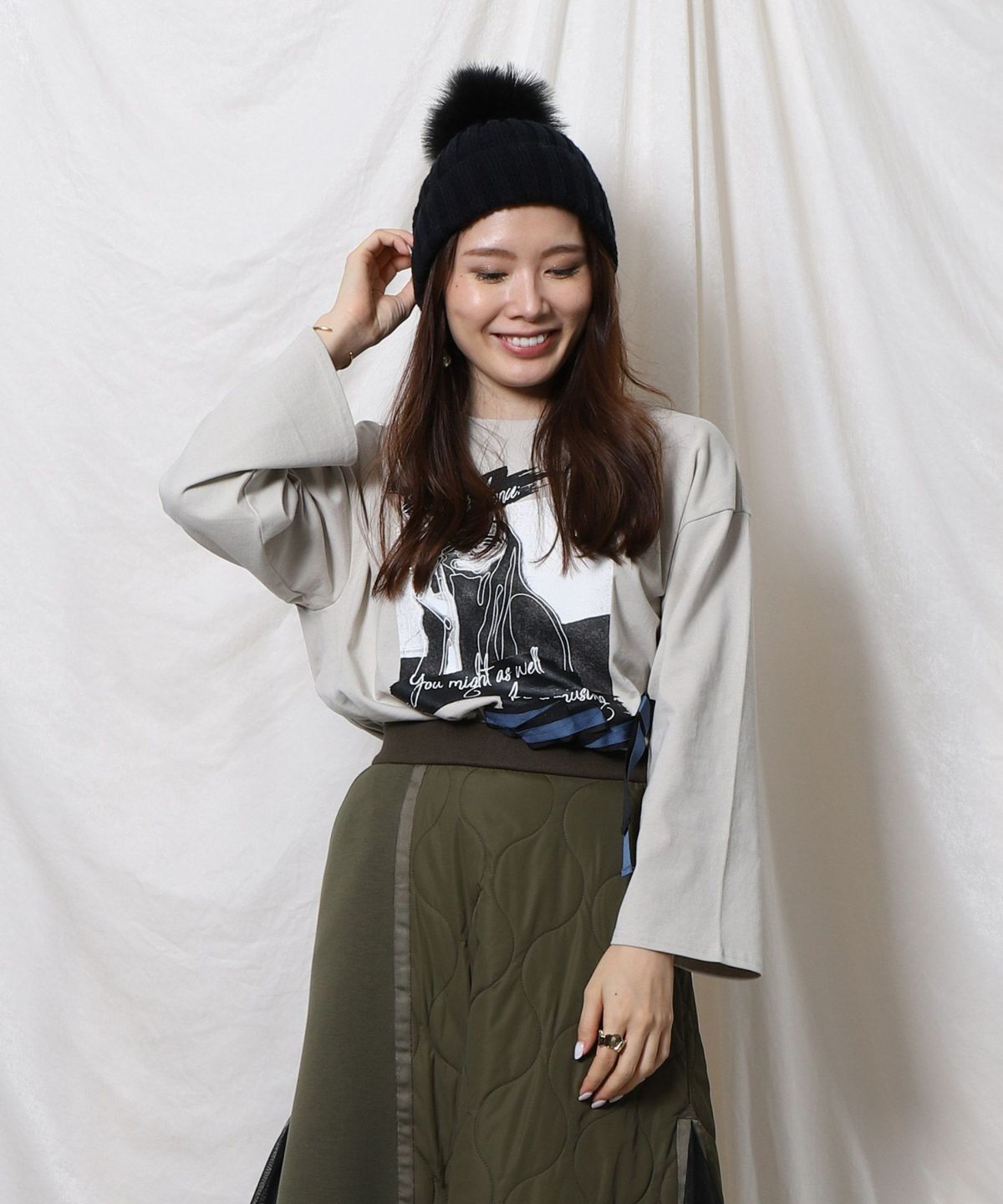 ★バイカラーリボンプリントTシャツ