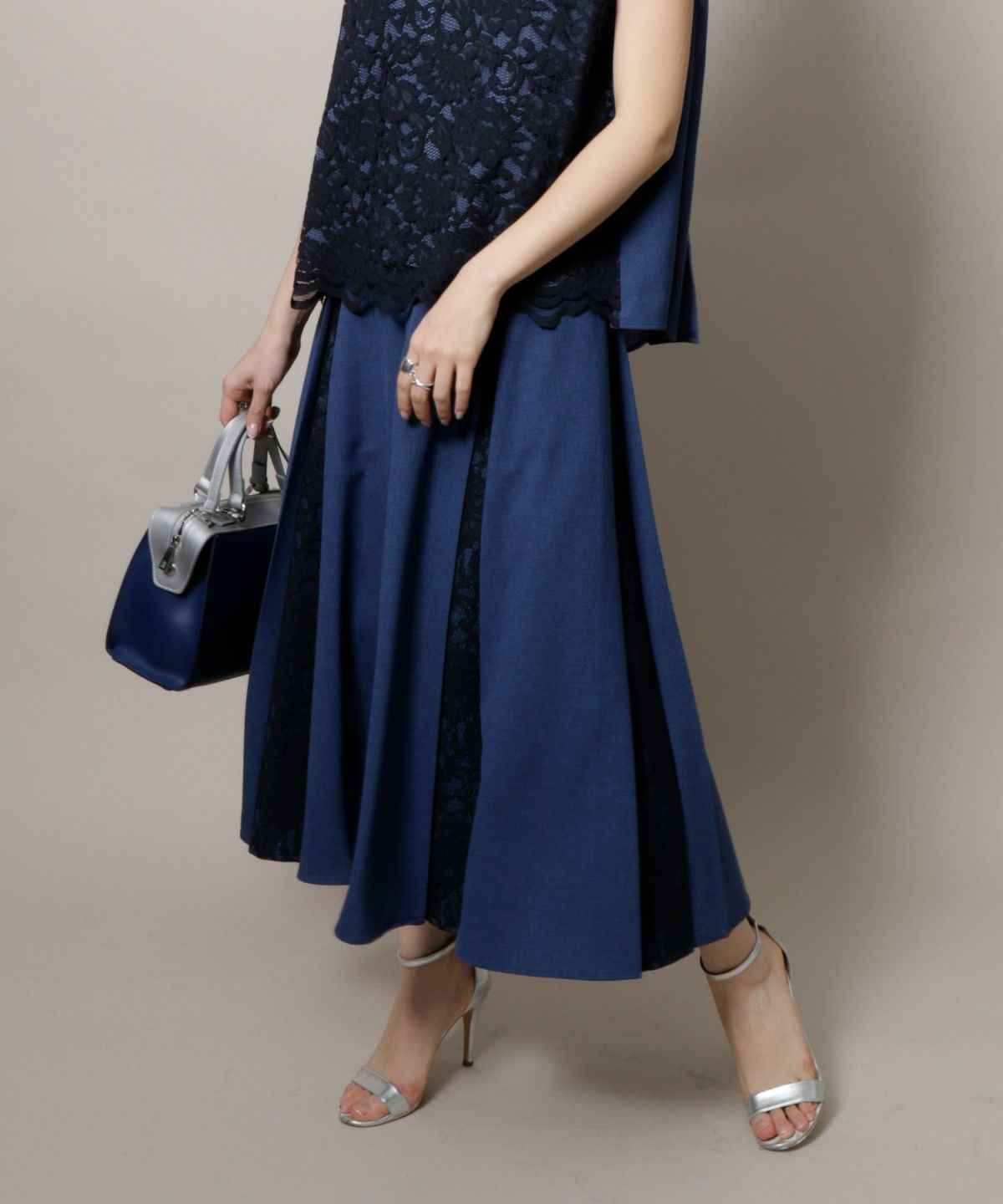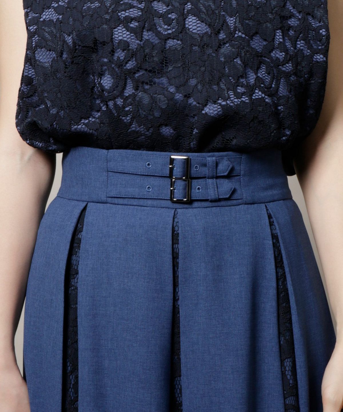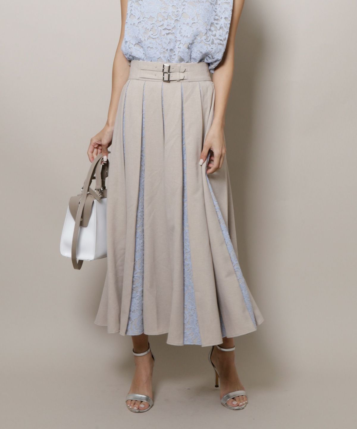 ★レース切替ボックスプリーツスカート