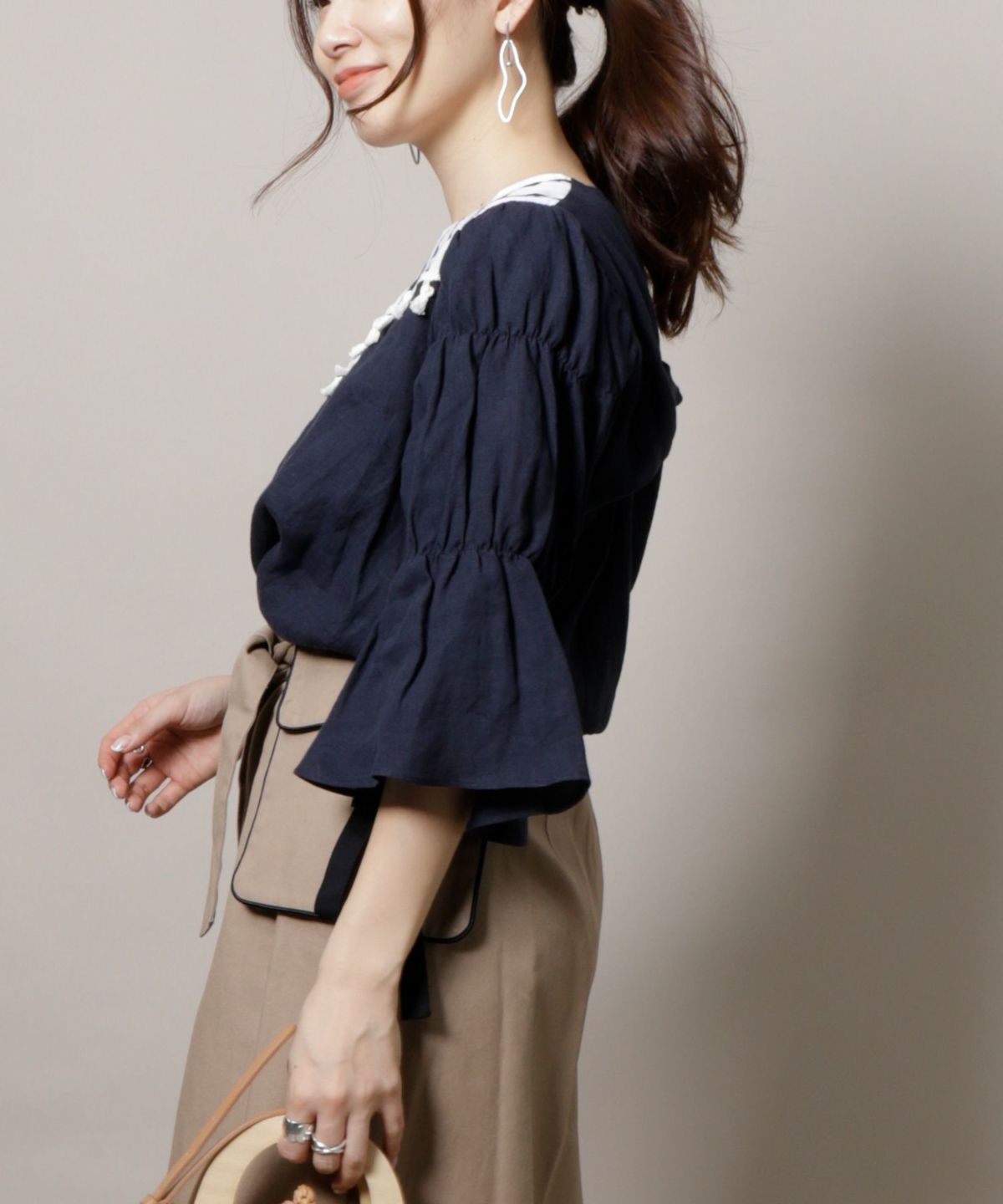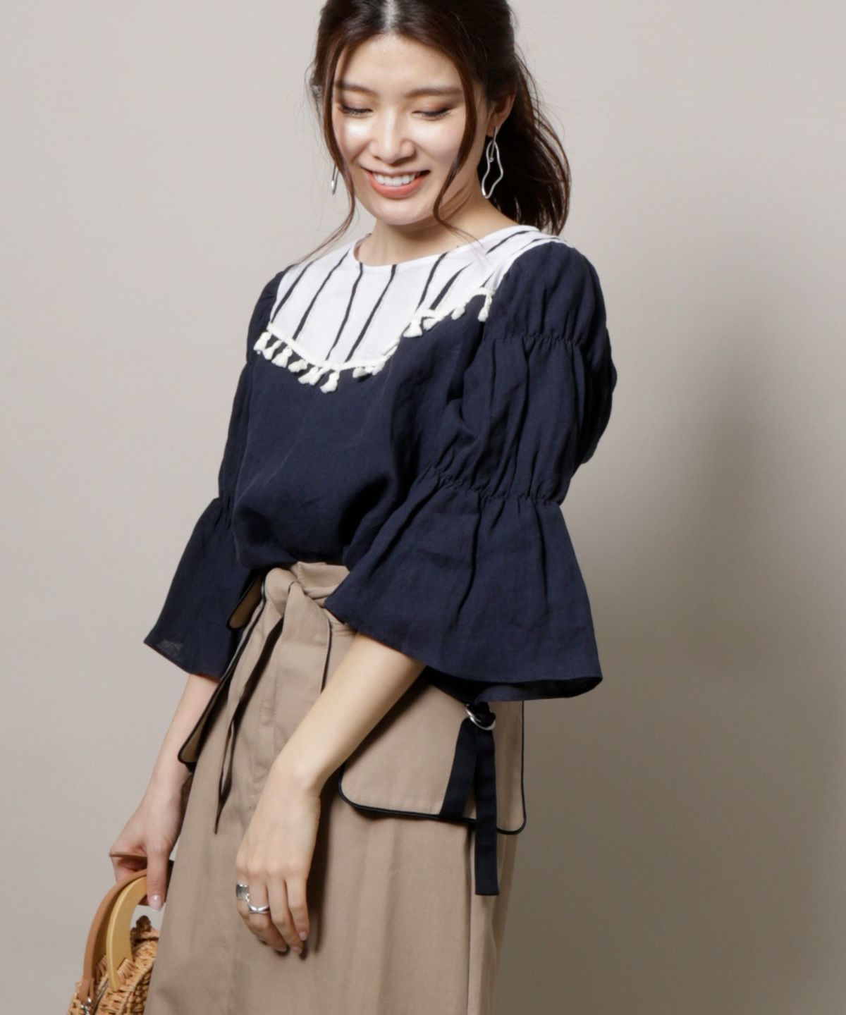 ★タッセル付バックツイストブラウス
