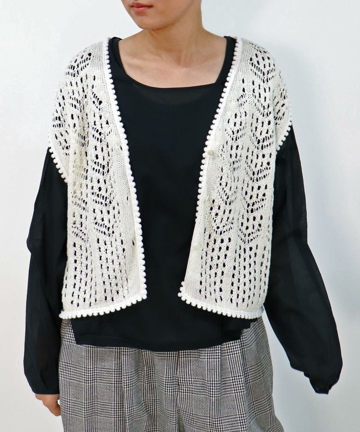 ◆ポンポンローゲージベスト【ニットベスト】