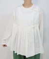 胸下にタックとギャザーが入った長袖のカシュクールブラウス。