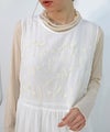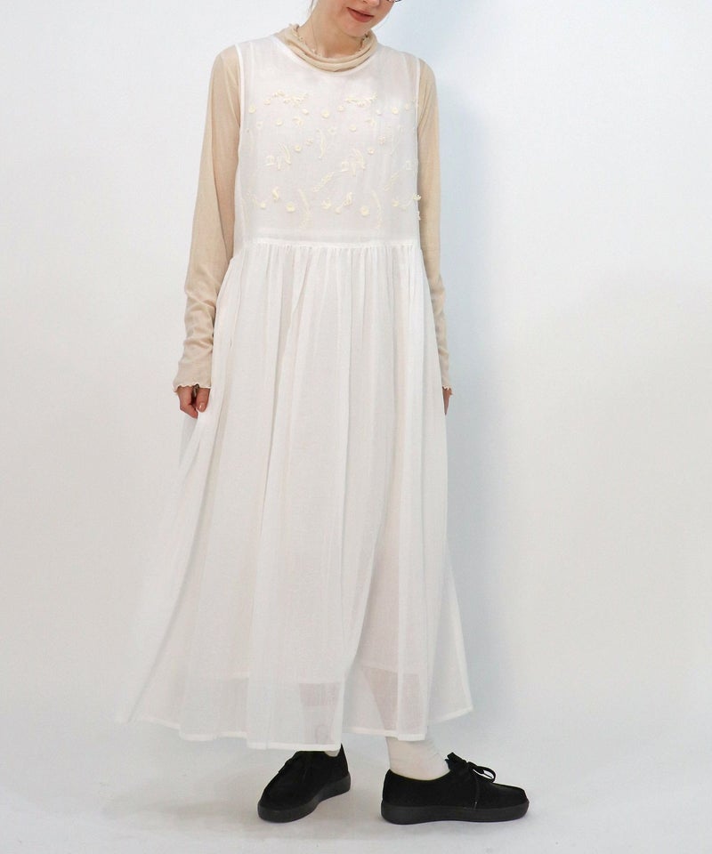 オリジナル刺繍生地を使用したノースリーブワンピース。