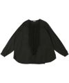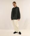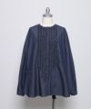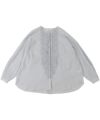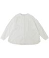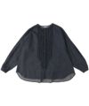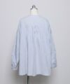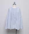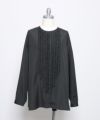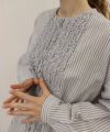 フロントに並んだ小さなギャザーフリルが特徴の長袖ブラウス。