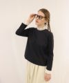 襟と袖口にコットンスカラップレースがあしらわれた長袖カットソー。