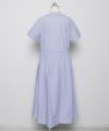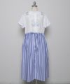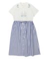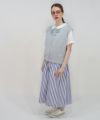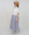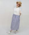 オフホワイトのスカート部分は太ストライプの生地と切り替えています。