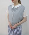 同じ刺繍が施された、襟付きブラウス、ノーカラーブラウスの展開もあります。