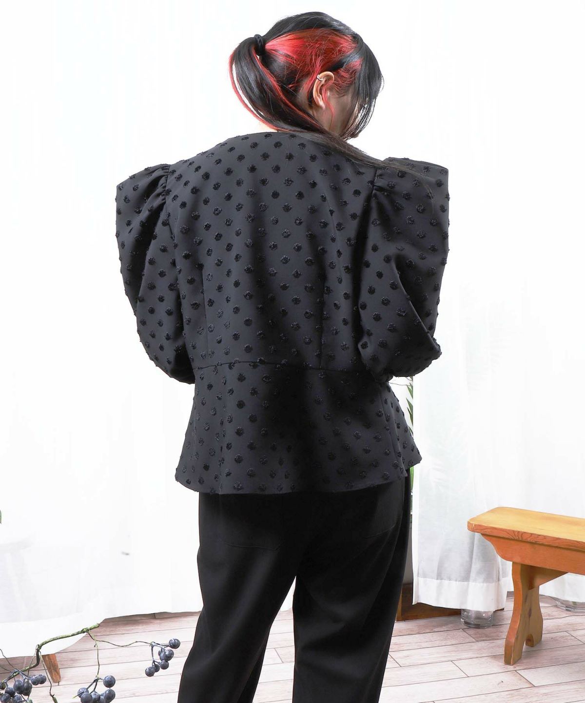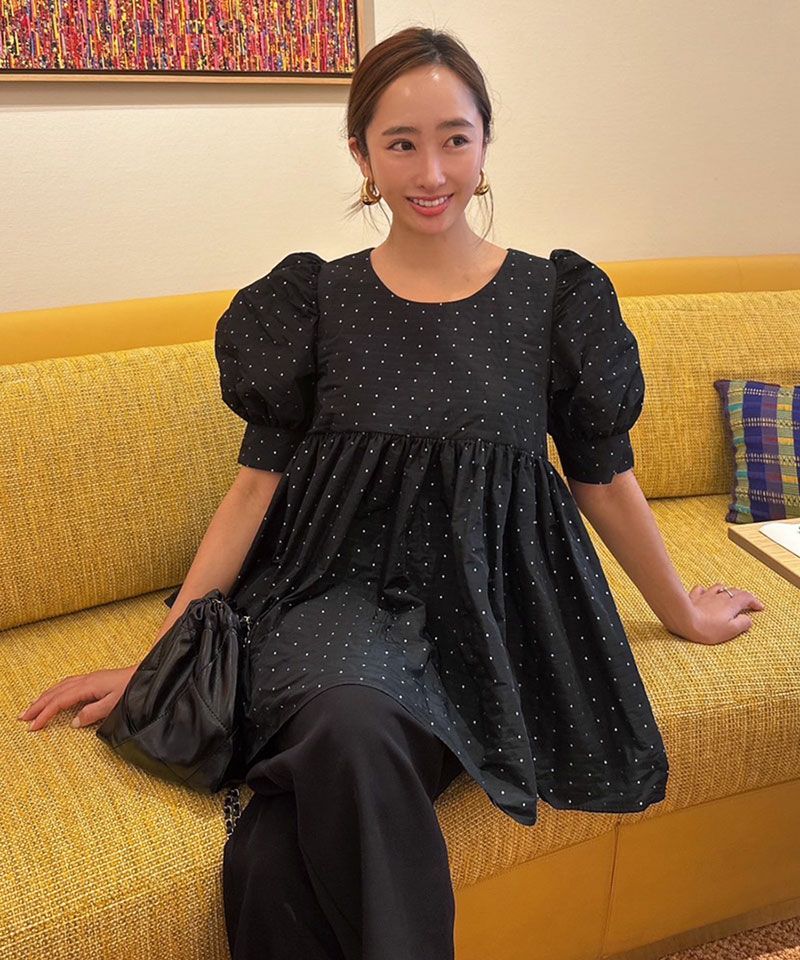 ドットジャガードペプラムトップス