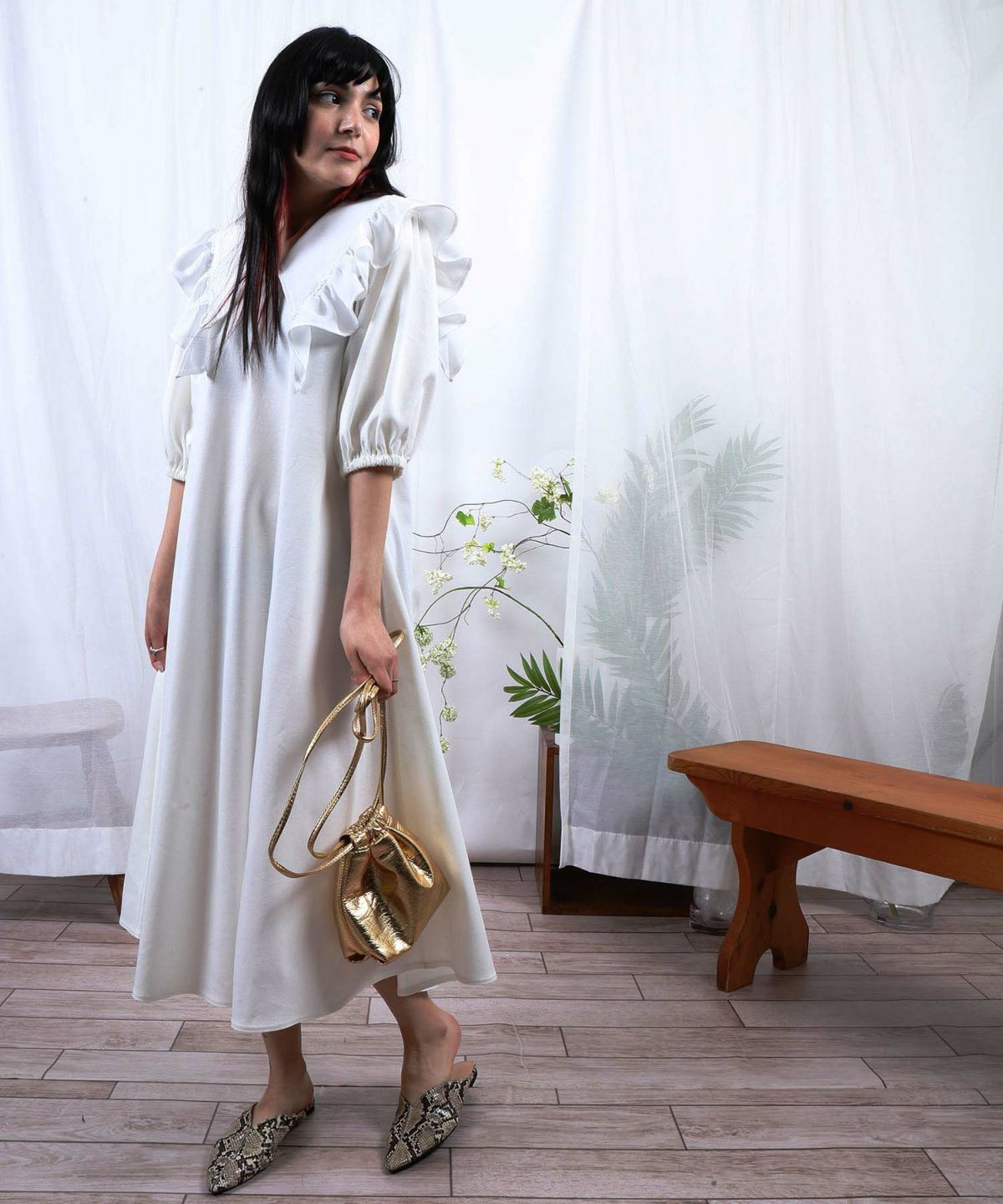 ★フリルカラーAラインワンピース