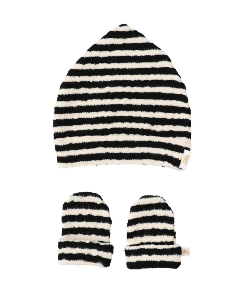 ★FITH|ストレッチキモウボーダー ベビー キャップ 帽子&ミトンset
