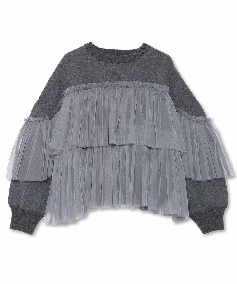 胸元にたっぷり施したチュールが印象的なニットプルオーバー。