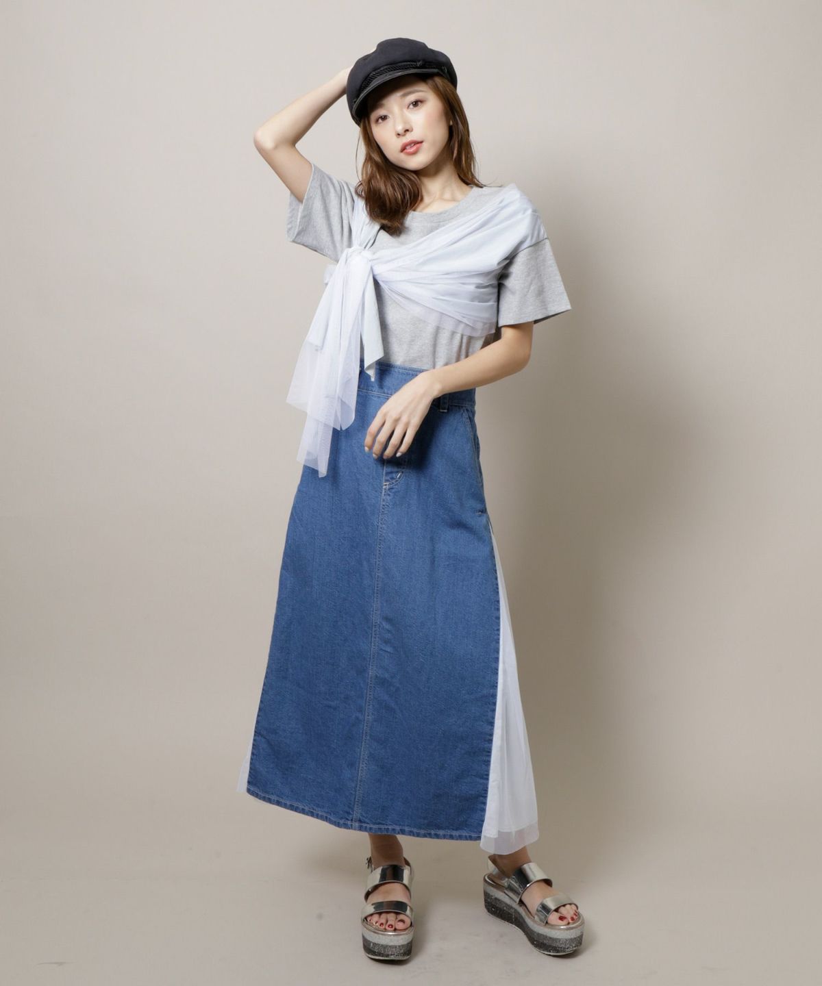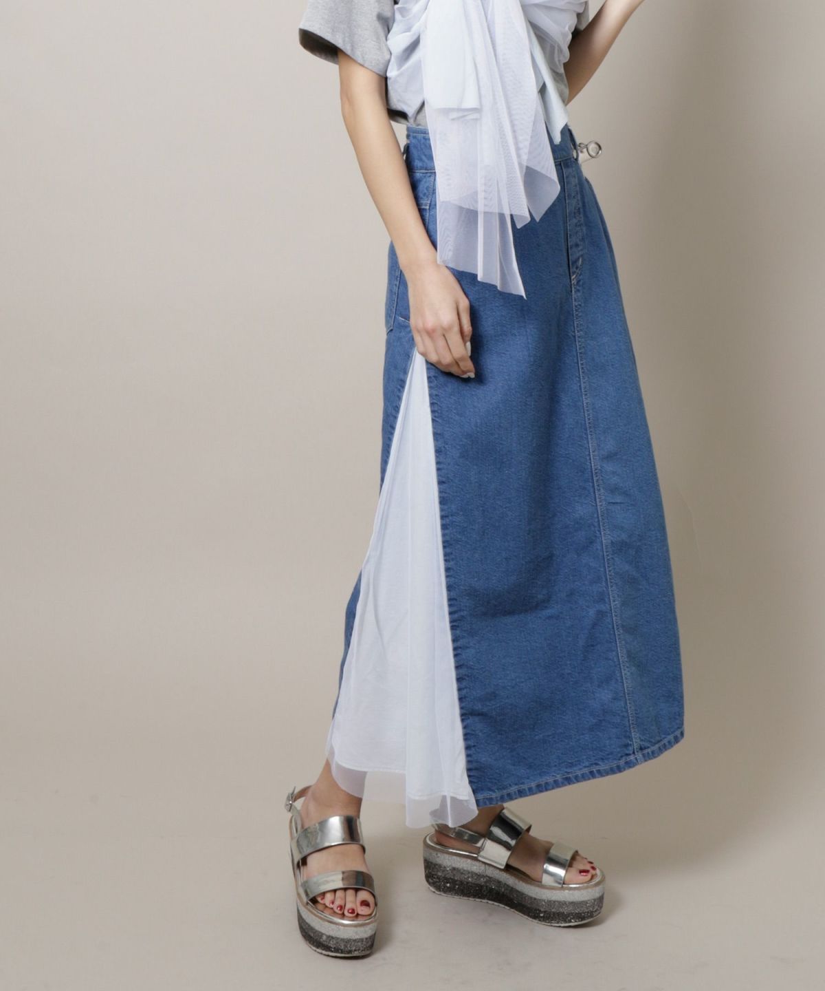 ★サイドチュールデニムスカート