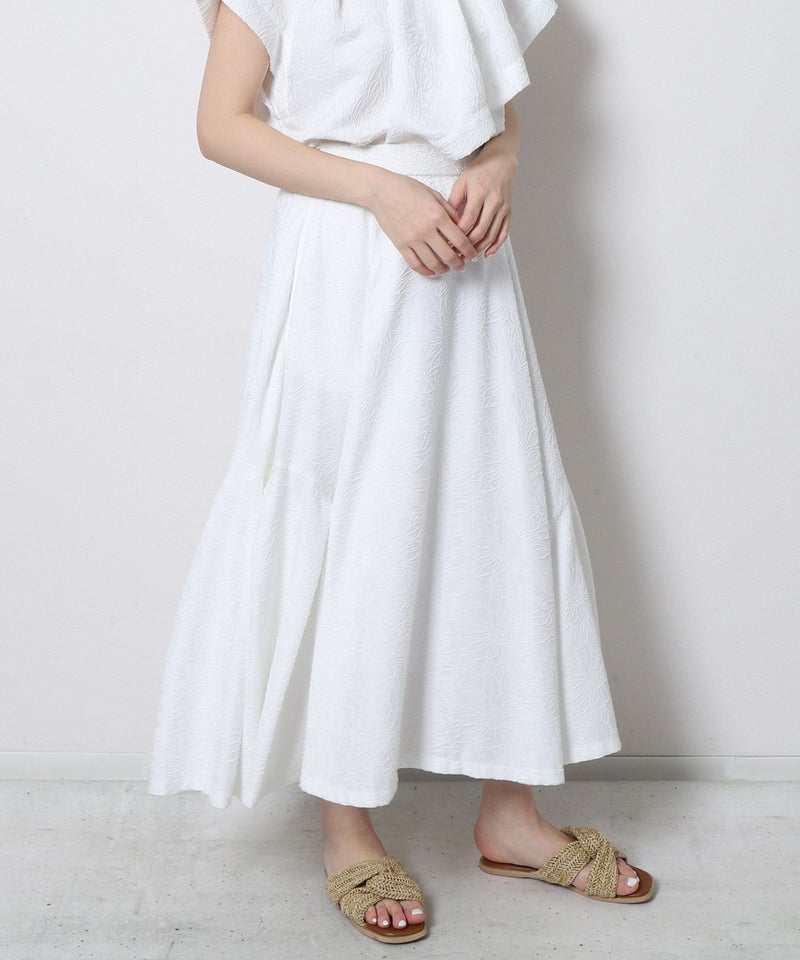 ほんのりフラワー柄のジャガード生地を贅沢に使ったフレアスカート。