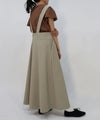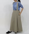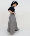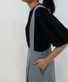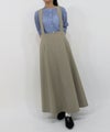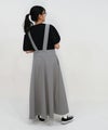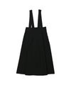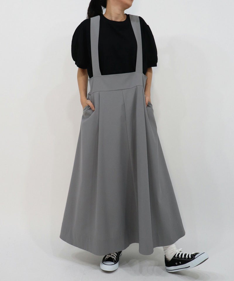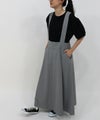 太幅の肩紐付きフレアスカート。