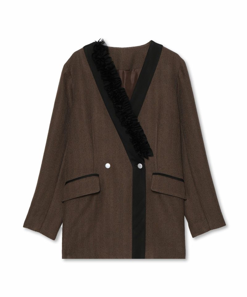 ブランド:Re.Verofonna(ヴェロフォンナ)カテゴリ:ジャケット素材:表地:ポリエステル100%透け感:なし生地の厚さ:普通シルエット:ゆったり伸縮性:なし裏地:あり洗濯表示:ドライクリーニング