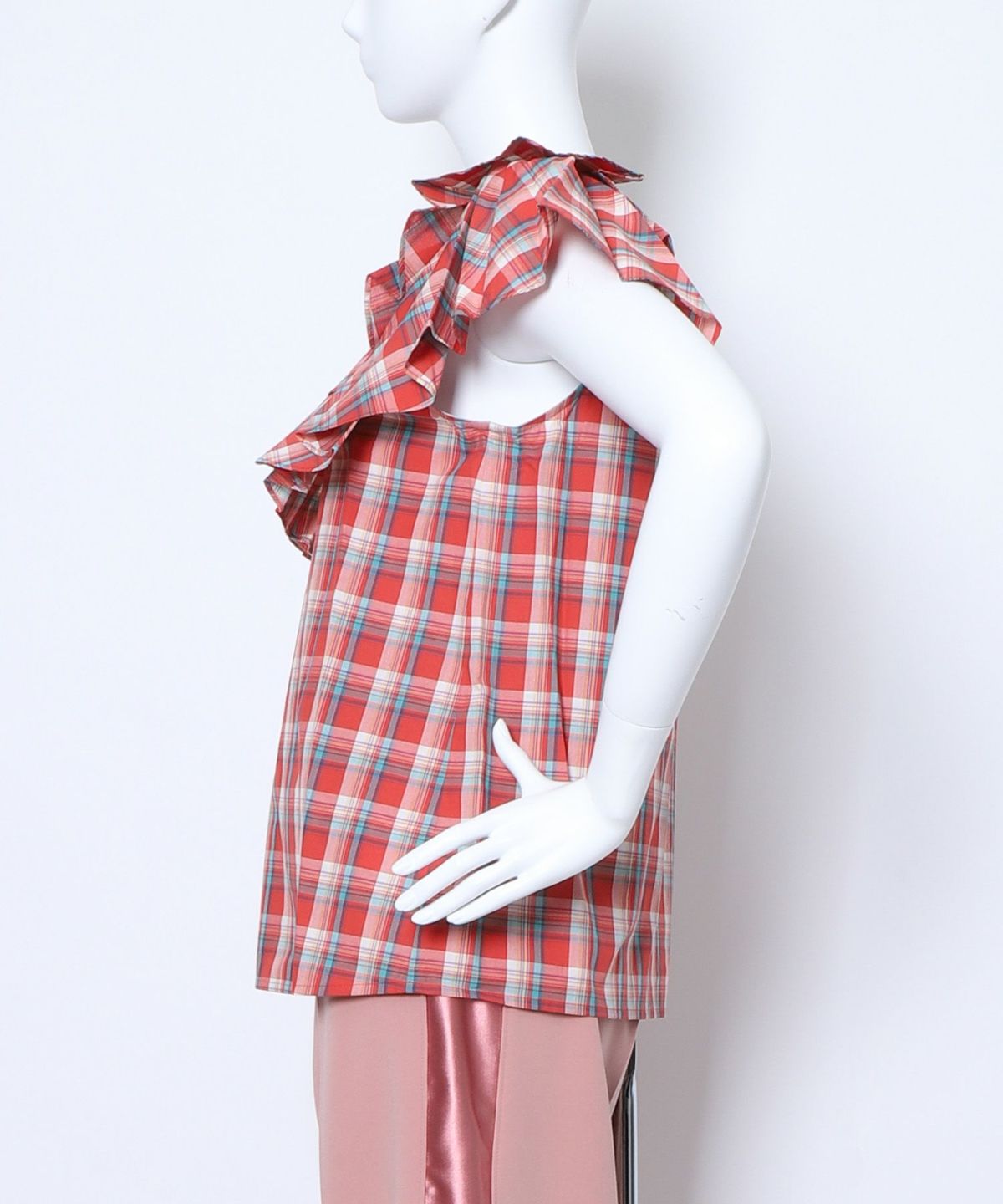 ★チェックフリルブラウス