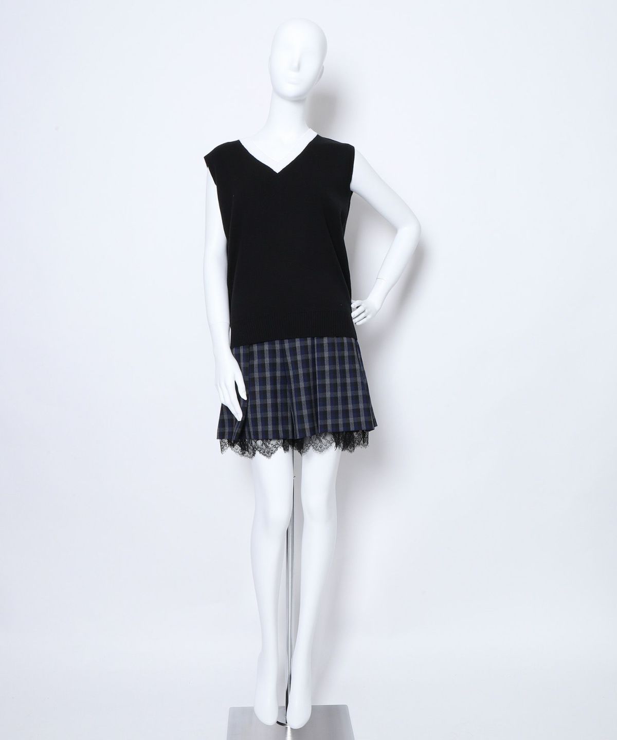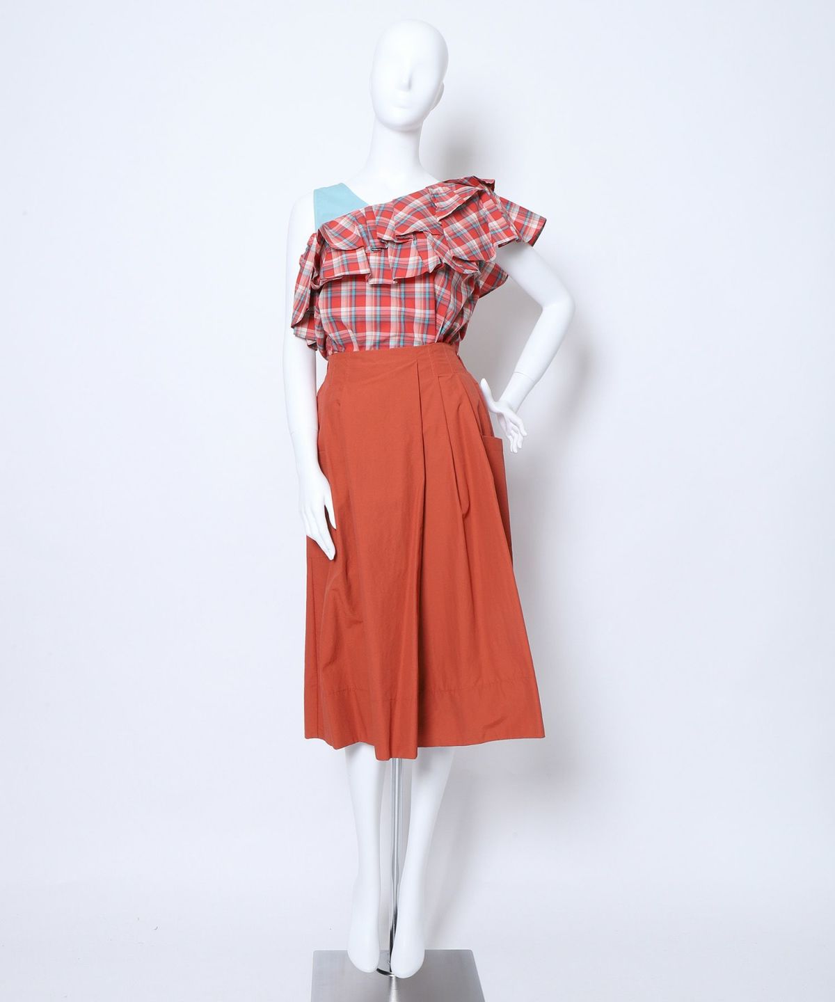 ★チェック切替トレンチプリーツスカート