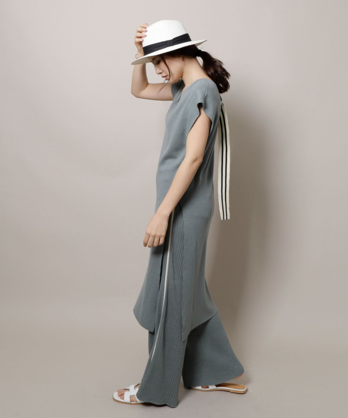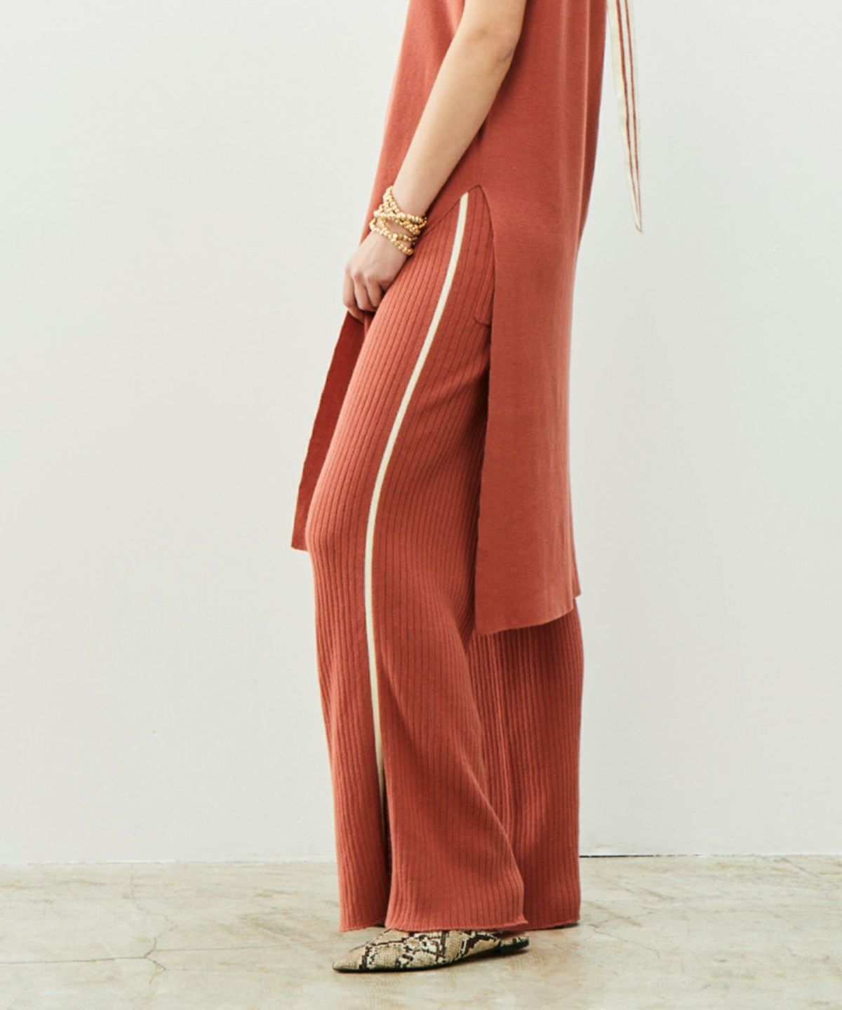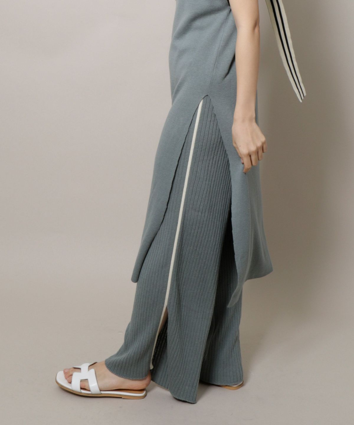 ★サイドラインワイドリブニットパンツ