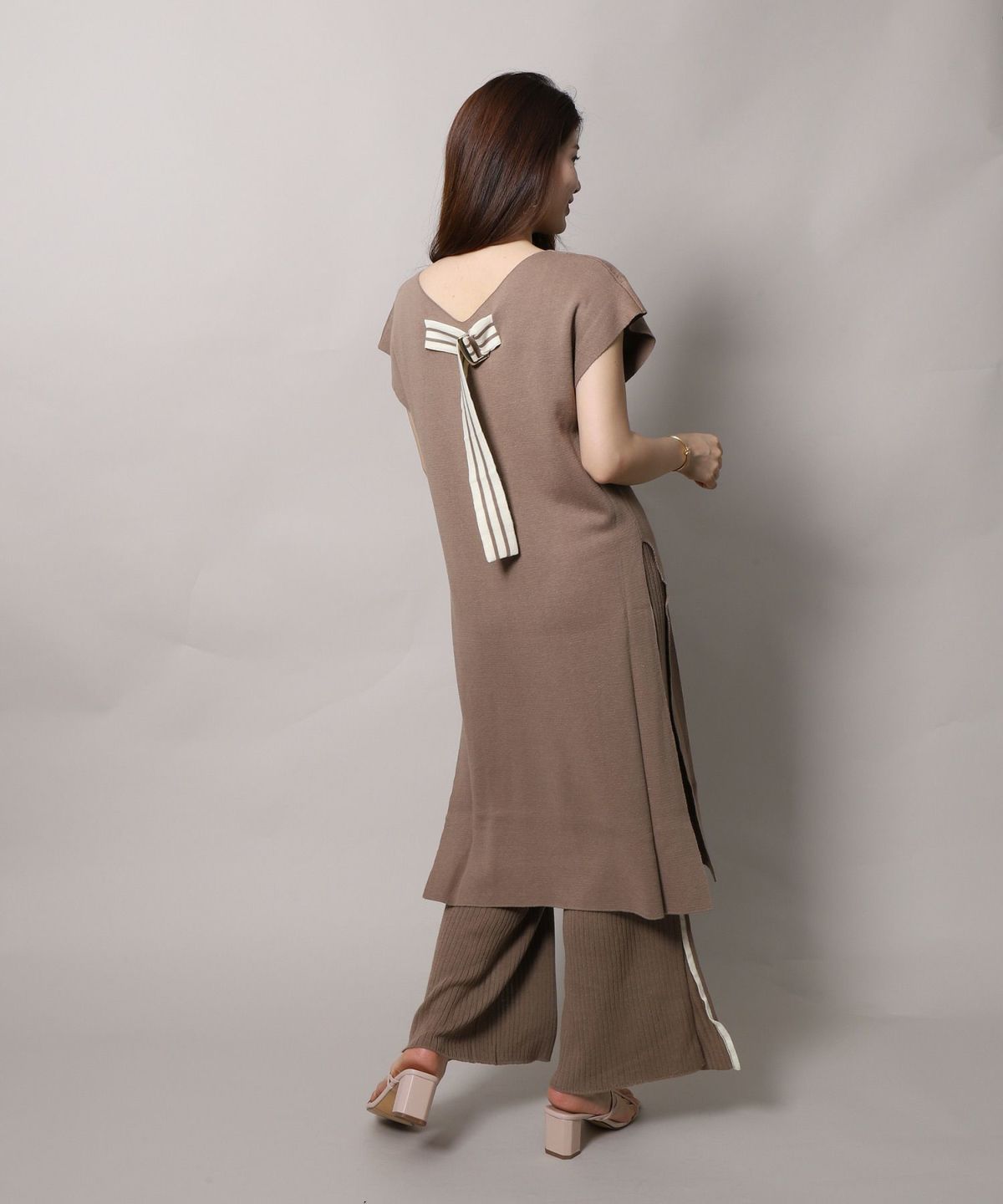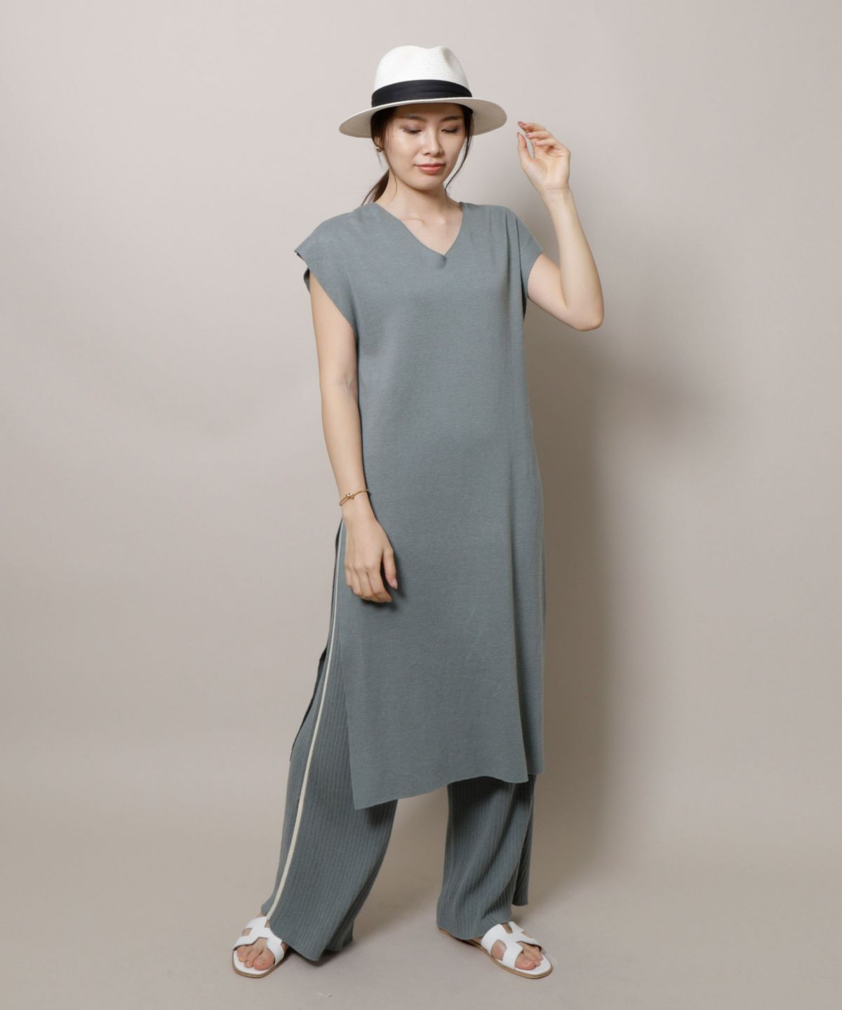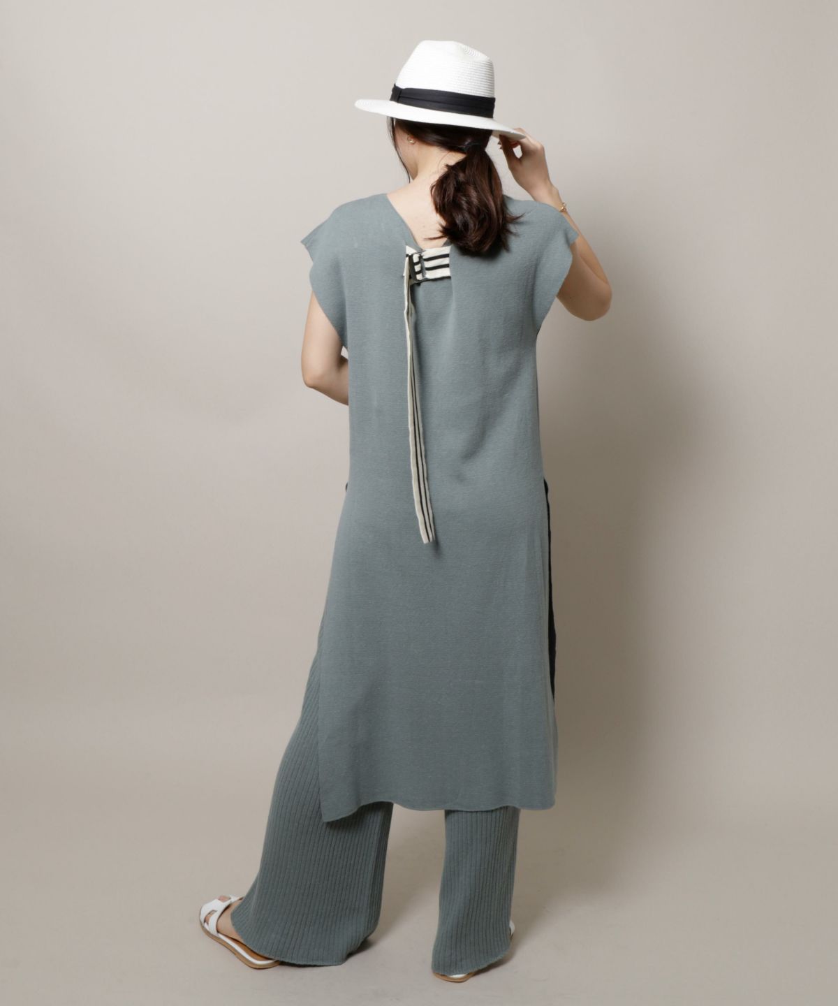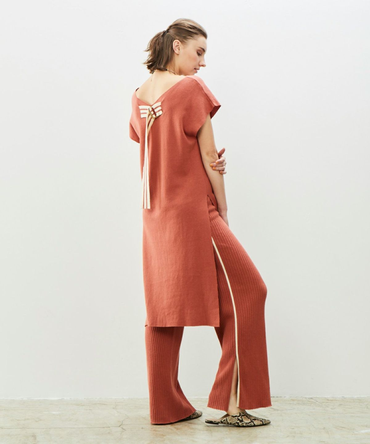 ★サイドラインワイドリブニットパンツ